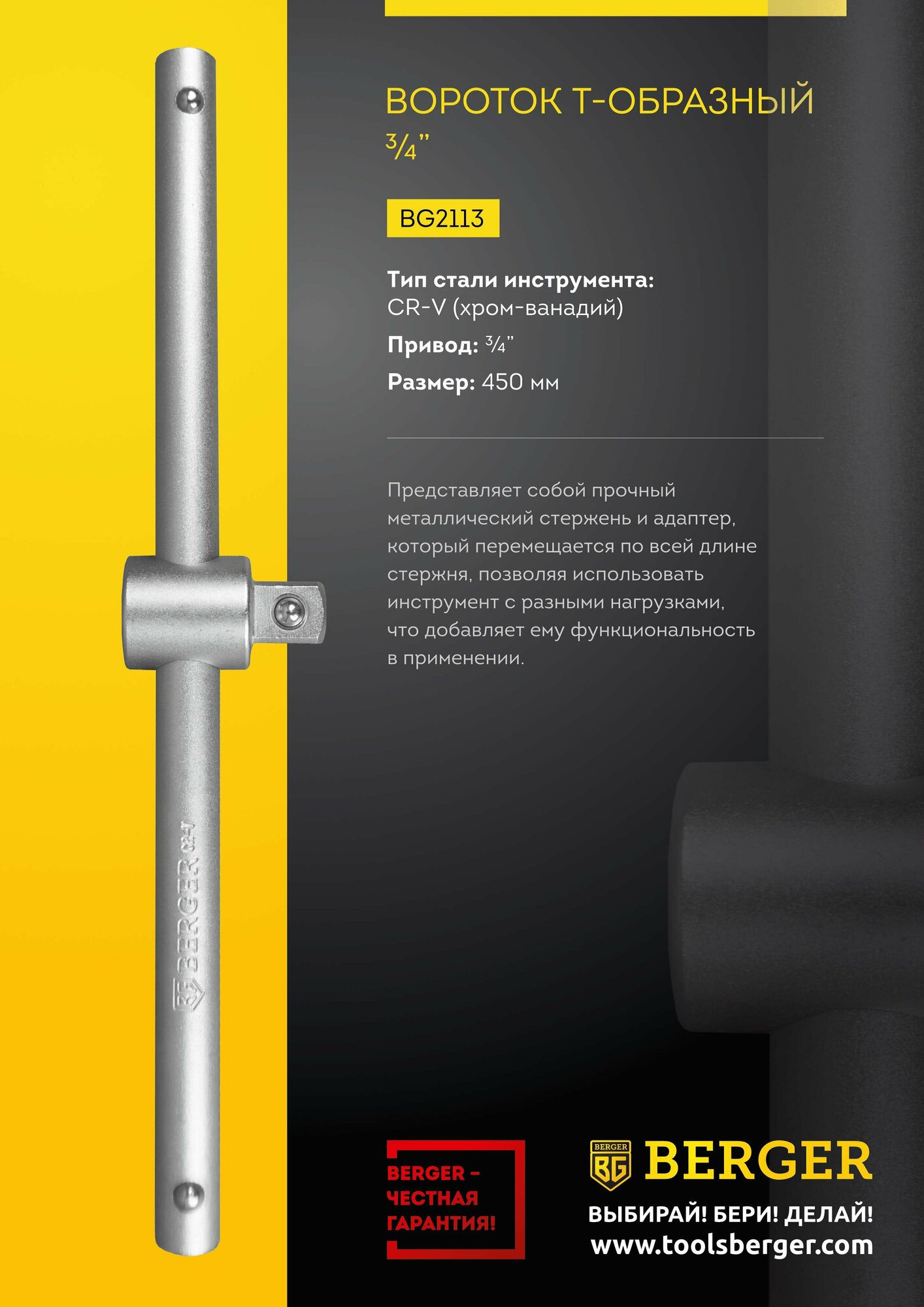 Вороток Т-Образный 3/4 450Мм Berger Bg2113 Berger Арт. Bg2113