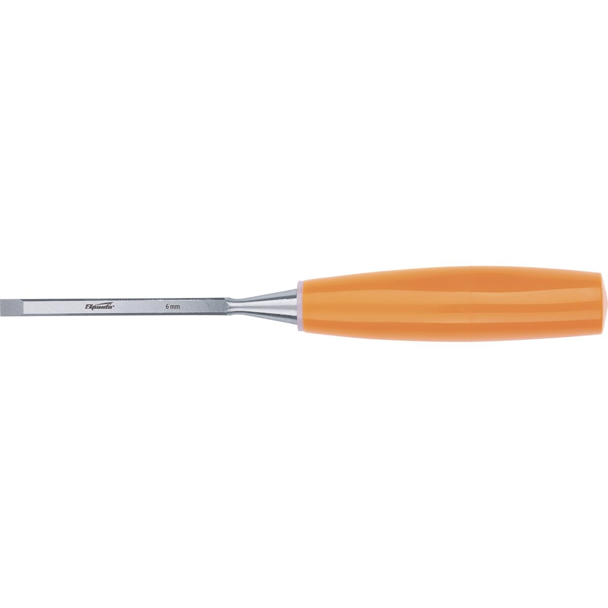 Стамеска используется для выполнения точных вырезов, подгонки отверстий, выемок на древесине. Рукоятка выполнена из ударопрочной пластмассы. Полотно изготовлено из углеродистой стали и закалено. Специальный угол заточки.