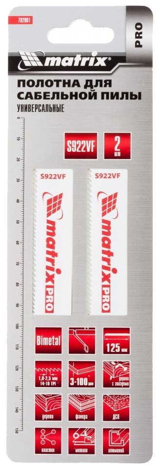 Полотна универсальные для сабельной пилы S922VF (151х125 мм 18-25 мм 2 шт.) MATRIX 782 782001