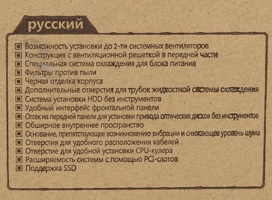 - нет прорезей в боковых стенках, есть посадочное место для ещё одного вентилятора спереди