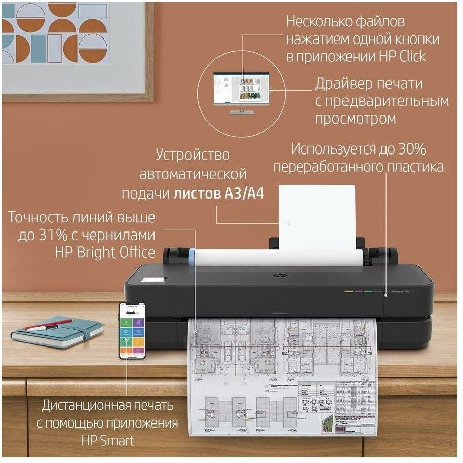 Плоттер HP (5HB07A) A1/24" Designjet T230