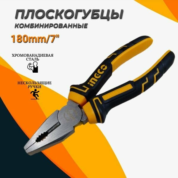 | Прочие особенности и свойства | Комбинированные плоскогубцы 180 мм INGCO HCP08188 изготовлены из высококачественной хромованадиевой инструментальной стали. Двухкомпонентные эргономичные рукоятки плоскогубцев обеспечивают комфорт при работе и исключают выскальзывание инструмента из рук. На губках предусмотрены две зоны захвата - для плоских и круглых деталей. |