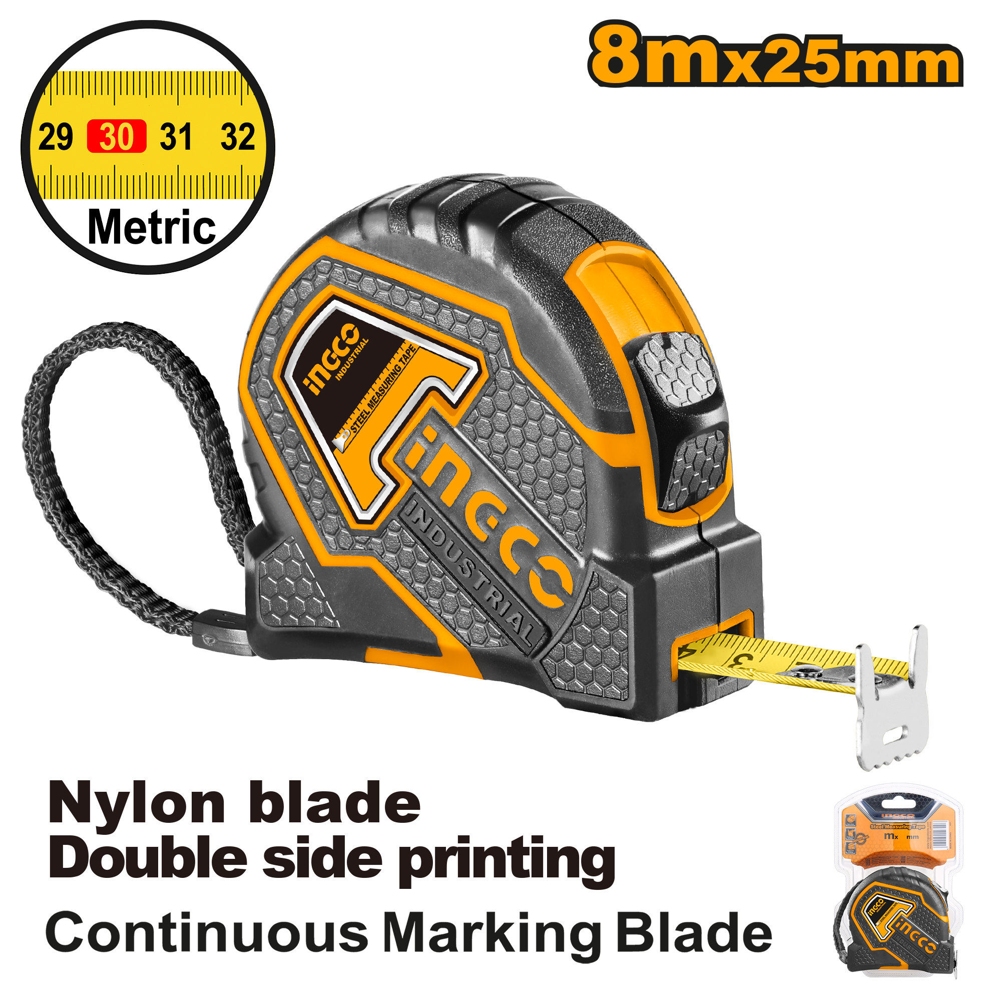 Рулетка INGCO 8м*25 мм INDUSTRIAL HSMT8808.1