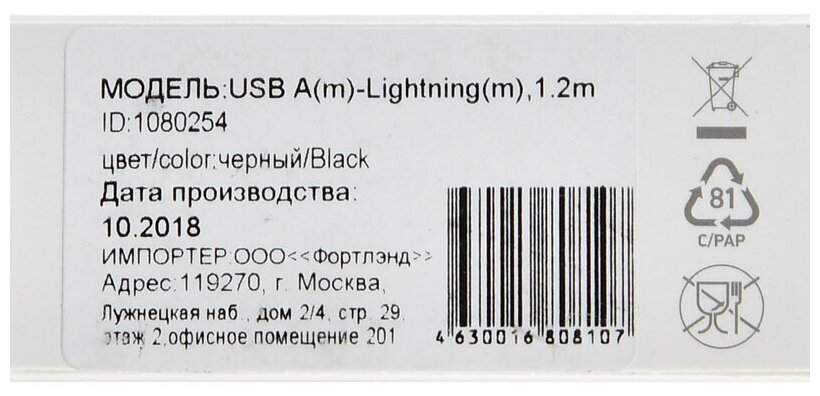 | Описание | Кабель для зарядки и синхронизации смартфонов и планшетов с разъемом Lightning. |