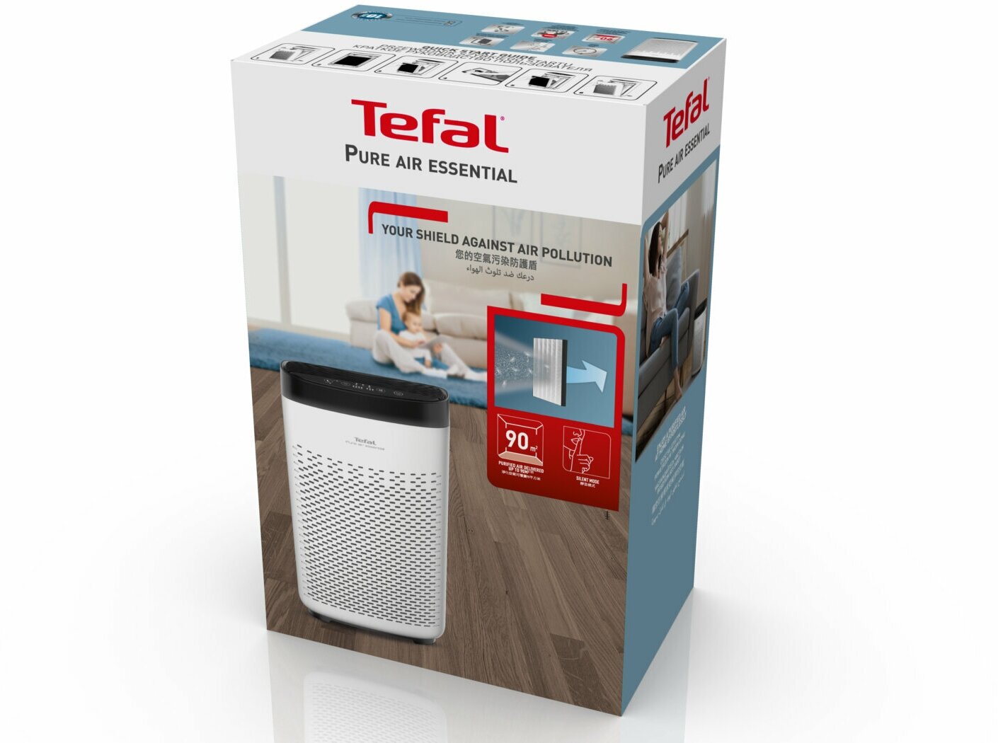 Очиститель воздуха Tefal быстро и качественно очищает воздух от ежедневного загрязнения - от обычной пыли и плесени до аллергенов и микрочастиц, чтобы дома вы могли дышать свободно. Также Pure Air Essential эффективно устраняет табачный дым и запахи в помещении. Устройство отличается высокой производительностью - оно очищает воздух со скоростью 230 м3/ч и отлично подходит для помещений площадью до 90 м2, а очистка воздуха в комнате площадью 10 м2 осуществляется всего за 7 минут. Очиститель с ионизатором удаляет из воздуха до 99,98% микрочастиц благодаря 3 специальным уровням фильтрации: фильтру предварительной очистки, активному угольному фильтру 2 в 1 и фильтру тонкой очистки. Угольный фильтр устраняет газ, дым, запахи и вредные испарения, включая летучие органические соединения, а фильтр тонкой очистки задерживает мельчайшие частицы, включая пыльцу, животные аллергены, плесень, пылевые клещи, вирусы, бактерии и другие микрочастицы, которые попадают в ваш дом. Воздухоочиститель Тефаль Pure Air Essential оснащен 3 скоростями работы, включая бесшумный режим, индикатором замены фильтров и таймером с функцией отложенного старта для максимально комфортного использования. Дышите свободно и будьте уверены в чистоте воздуха в доме с бытовым воздухоочистителем Tefal Pure Air Essential.