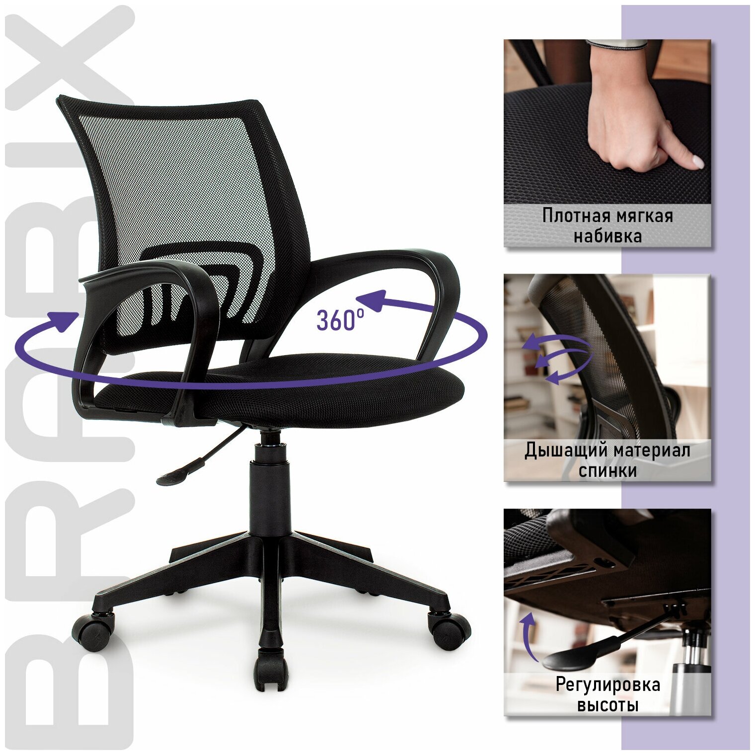 | Дополнительно | BRABIX "Fly MG-396" - доступное, качественное кресло с эргономичной сетчатой спинкой. Прекрасный вариант для повседневной работы в офисе и дома.,,Спинка выполнена из прочного материала - акриловой сетки и имеет выраженную поясничную поддержку, обеспечивающую комфортную посадку в течение всего рабочего дня.,,Ткань TW обладает высокой воздухопроницаемостью и прочностью, практически не истирается.,,Наполнитель сиденья - утолщенный поролон средней жесткости.,,Пластиковое пятилучие способно выдержать нагрузку до 120 кг!,,Модель оснащена регулировкой по высоте посадки.,,Неприхотливая модель для дома и офиса среднего ценового сегмента.,,Кресла марки Brabix отличаются современным дизайном, эргономикой, аккуратным исполнением и отличным соотношением цены и качества. |