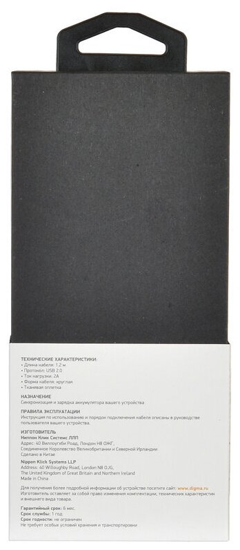 | Прочие особенности и свойства | Кабель предназначен для передачи данных между мобильными устройствами и компьютером, а также для зарядки мобильного устройства от USB порта компьютера или сетевого зарядного устройства. |
