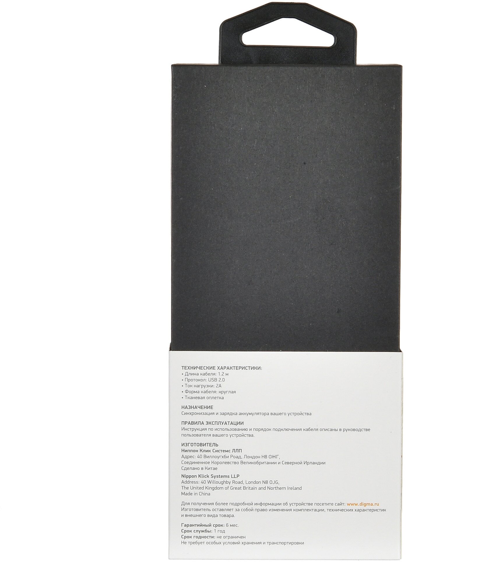 Кабель Digma USB A (m) USB Type-C (m) 1.2м отличается высокой прочностью и прослужит вам долгие годы.