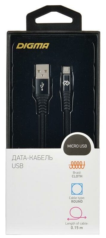 Кабель Digma micro USB B (m) 0.15м - для быстрой зарядки и безопасной передачи сигнала!