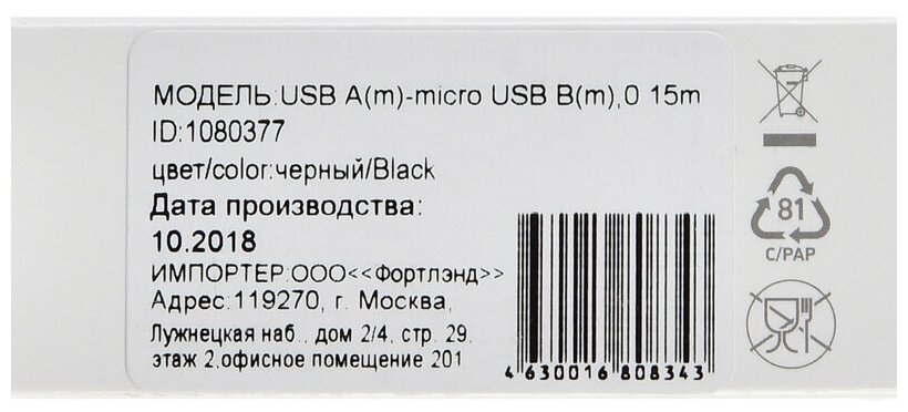 | Описание | Кабель USB для передачи данных между персональными компьютерами и смартфонами, планшетами, MP3-плеерами и прочими устройствами с разъемом micro USB. |
