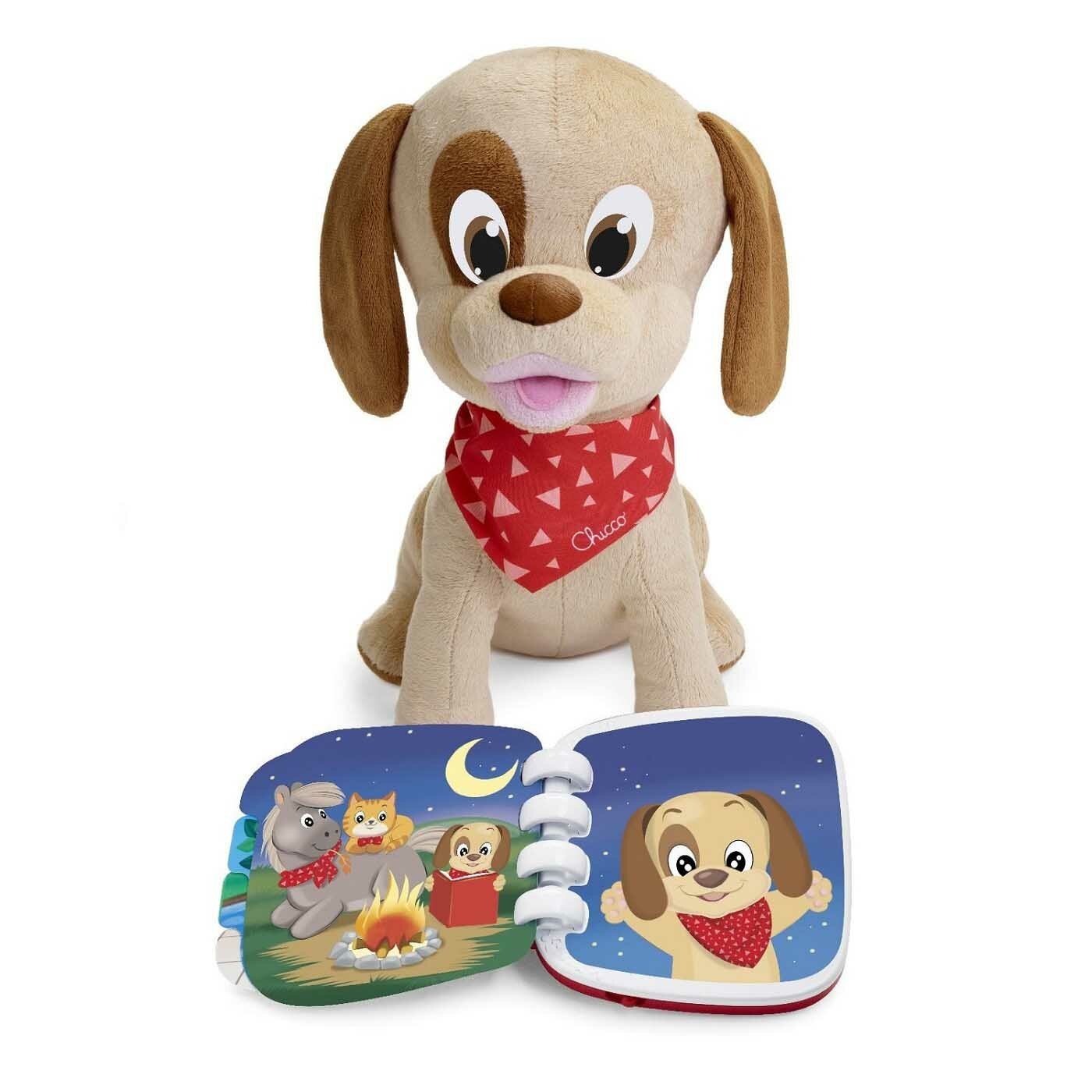 Chicco – первая интерактивная говорящая мягкая игрушка. В комплекте со щенком есть иллюстрированная книга. Когда малыш открывает книгу, щенок начинает рассказывать историю и продолжает свое повествование, когда страницы переворачиваются.