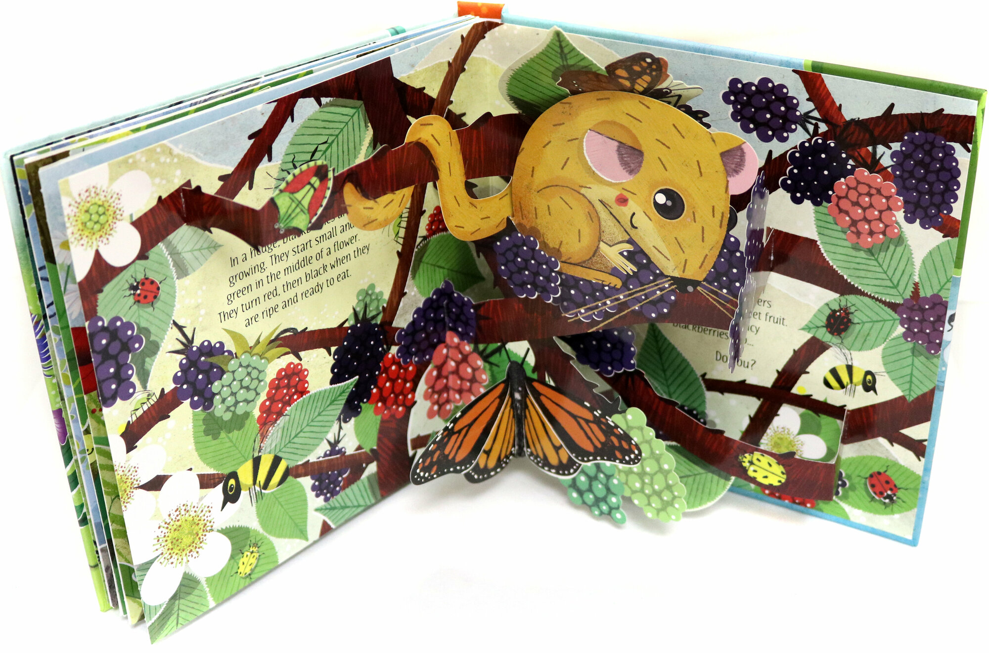 Take a closer look at nature in this wonderful pop-up book, which brings a nature walk to life - springing out from the pages! See a pop-up bees buzzing in the flowers, a mouse in a blackberry bush, and watch a moving woodpecker pecking and a frog swimming by in a pond. A wonderful way to celebrate nature with little children. With free online audio to listen to.