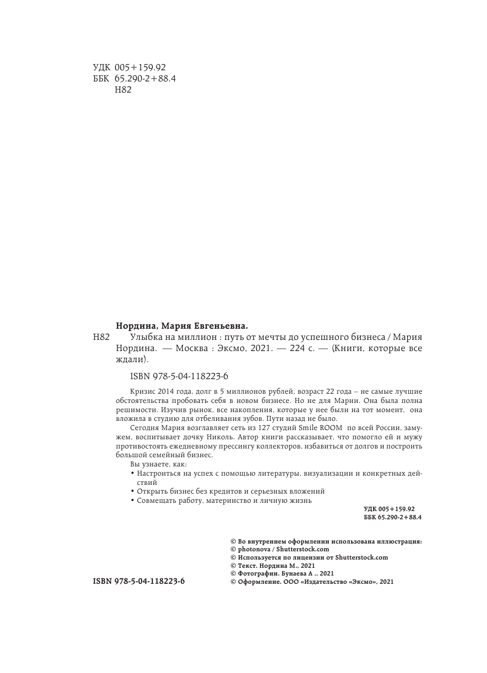Улыбка на миллион. Путь от мечты до успешного бизнеса (Мария Евгеньевна Нордина); Эксмо, 2021