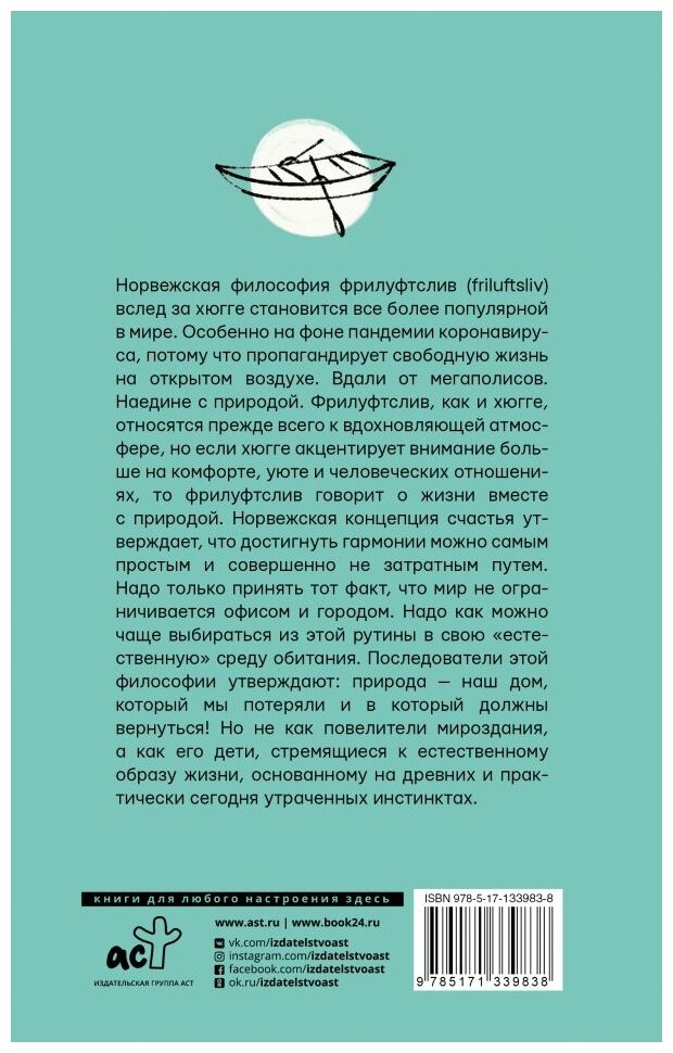 На сегодняшний день товар «Книга: Счастье по-норвежски. Фрилуфтслив — искусство жить и не париться (Нора Олсен); Издательство АСТ, 2021» можно купить с кешбеком в 4 магазинах: ЛитРес, Читай-город, book24, Буквоед