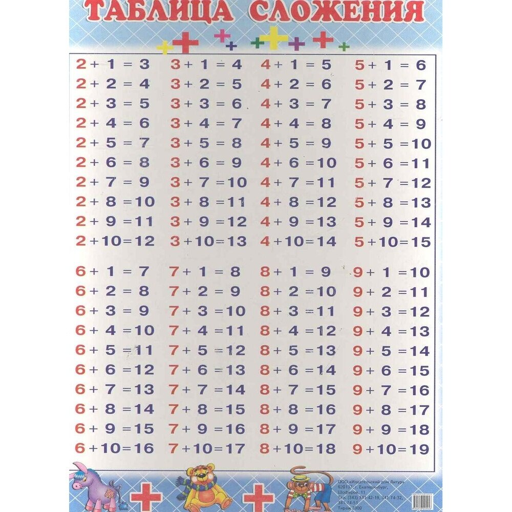 Таблица сложения (140x90); Литур, 2015