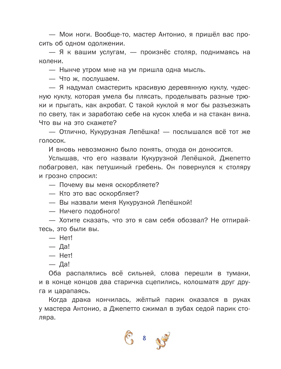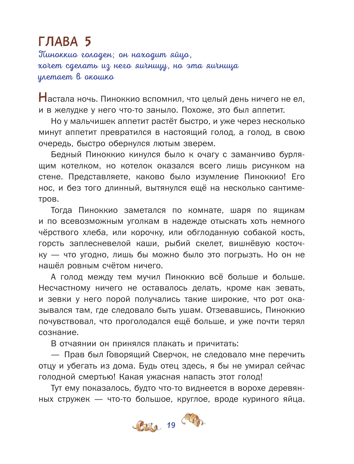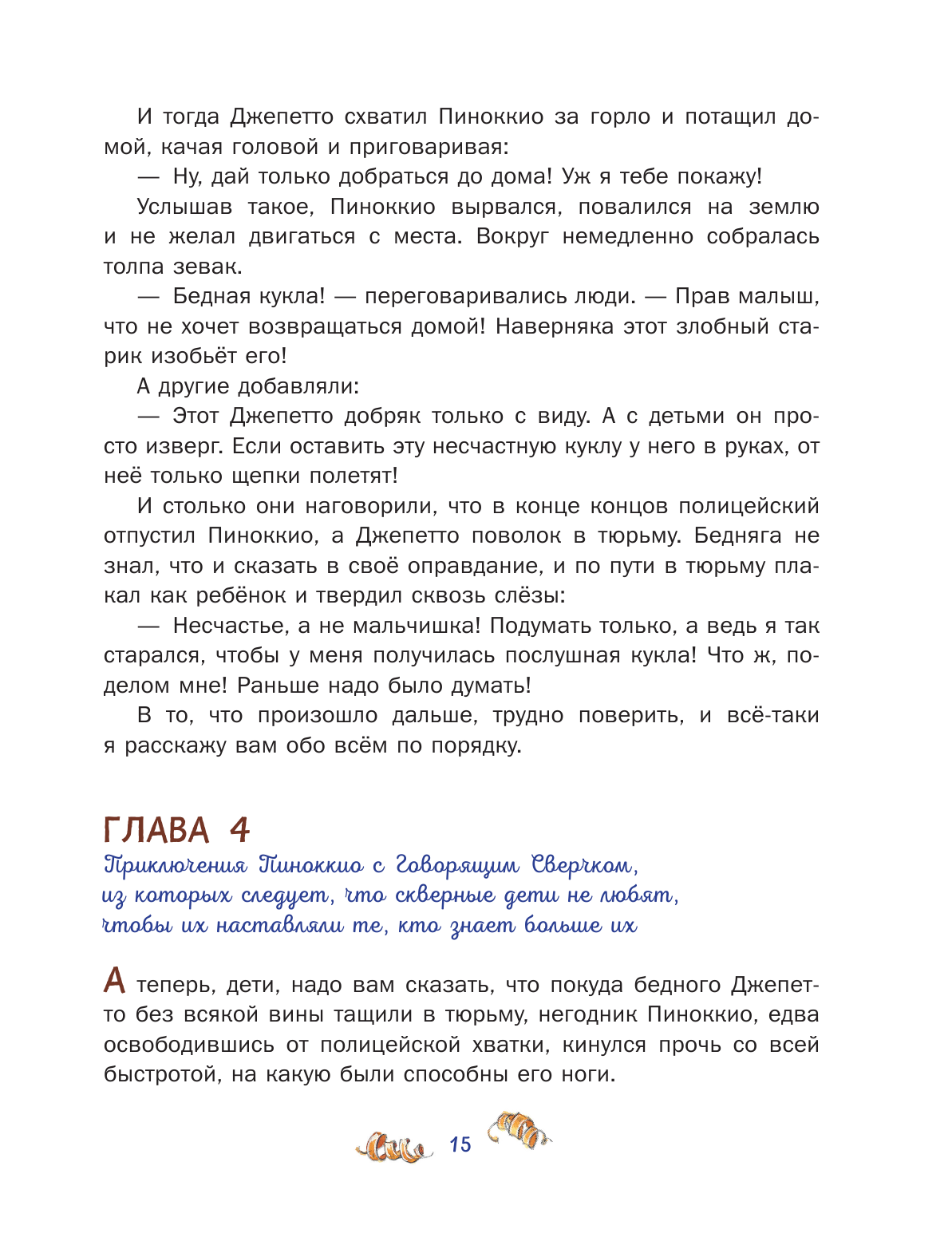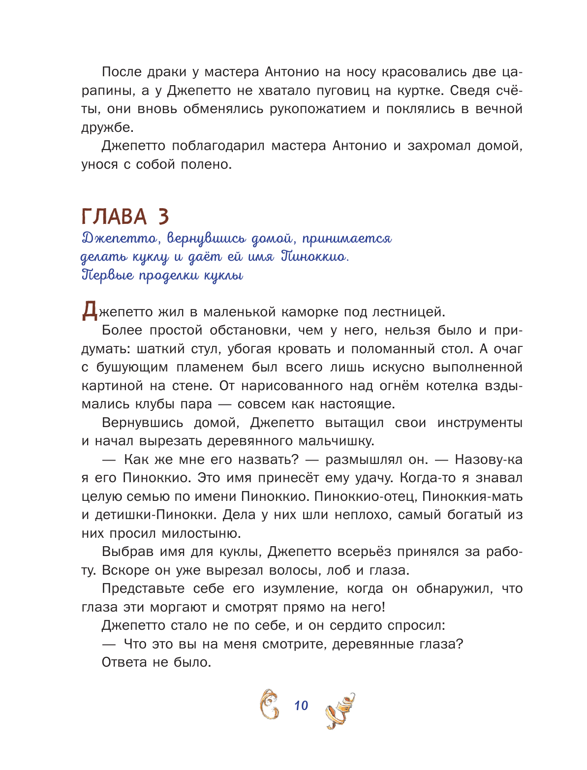 Книгу покупала для дочери 10 лет по ее просьбе, ей хотелось узнать ту первую историю, после которой был написан Буратино. Дочь читала долго, отмечала все сходства и различия между двумя историями. Прочитав, сказала, что история Пиноккио ей понравилась больше, потому что там больше приключений, чем в истории про Буратино и концовка здесь ей тоже нравится больше. А мне больше понравилась сказка из детства про веселого, озорного, неунывающего деревянного человечка, чем очень поучительная история про Пиноккио, который постоянно осмысливает свое поведение и во всем раскаивается.