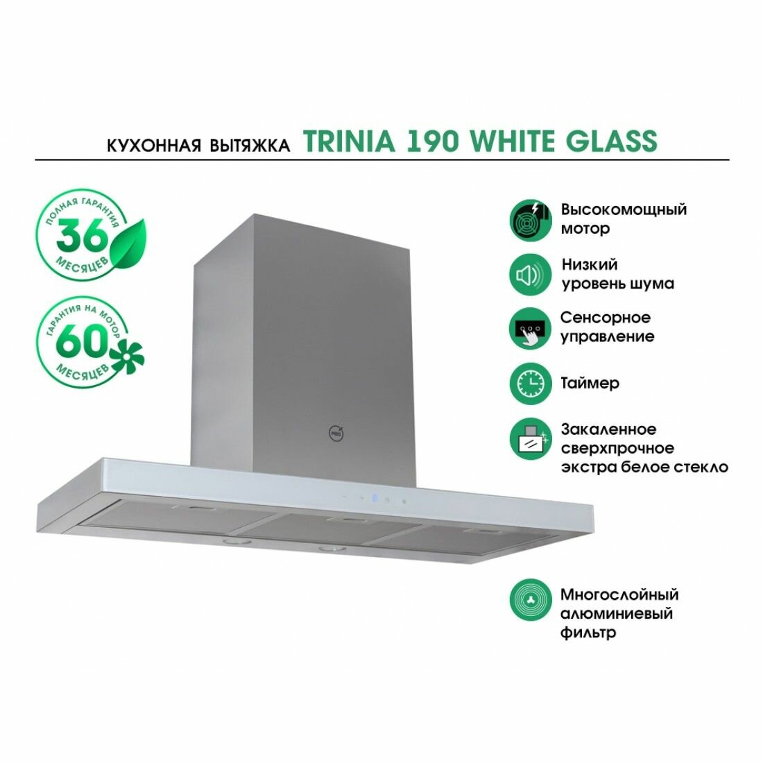 Стильная кухонная вытяжка TRINIA 190 BLACK GLASS своими прямыми линиями и красивой передней панелью из закаленного стекла черного цвета украсит собой любую современную кухню. Ее нешумный, но мощный мотор эффективно избавит вашу кухню от ненужных запахов как в режиме рециркуляции, так и в режиме воздухоотведения, не отвлекая вас от общения с близкими. Сенсорное управление придает вытяжке TRINIA 190 BLACK GLASS ультрамодный вид, плюс на ее горизонтальную поверхность можно поставить маленькие декоративные элементы. Очистка такой вытяжки займет у вас не более пары минут. Вся кухонная техника бренда MBS соответствует всем современным европейским стандартам, а гарантия производителя составляет 3 года.