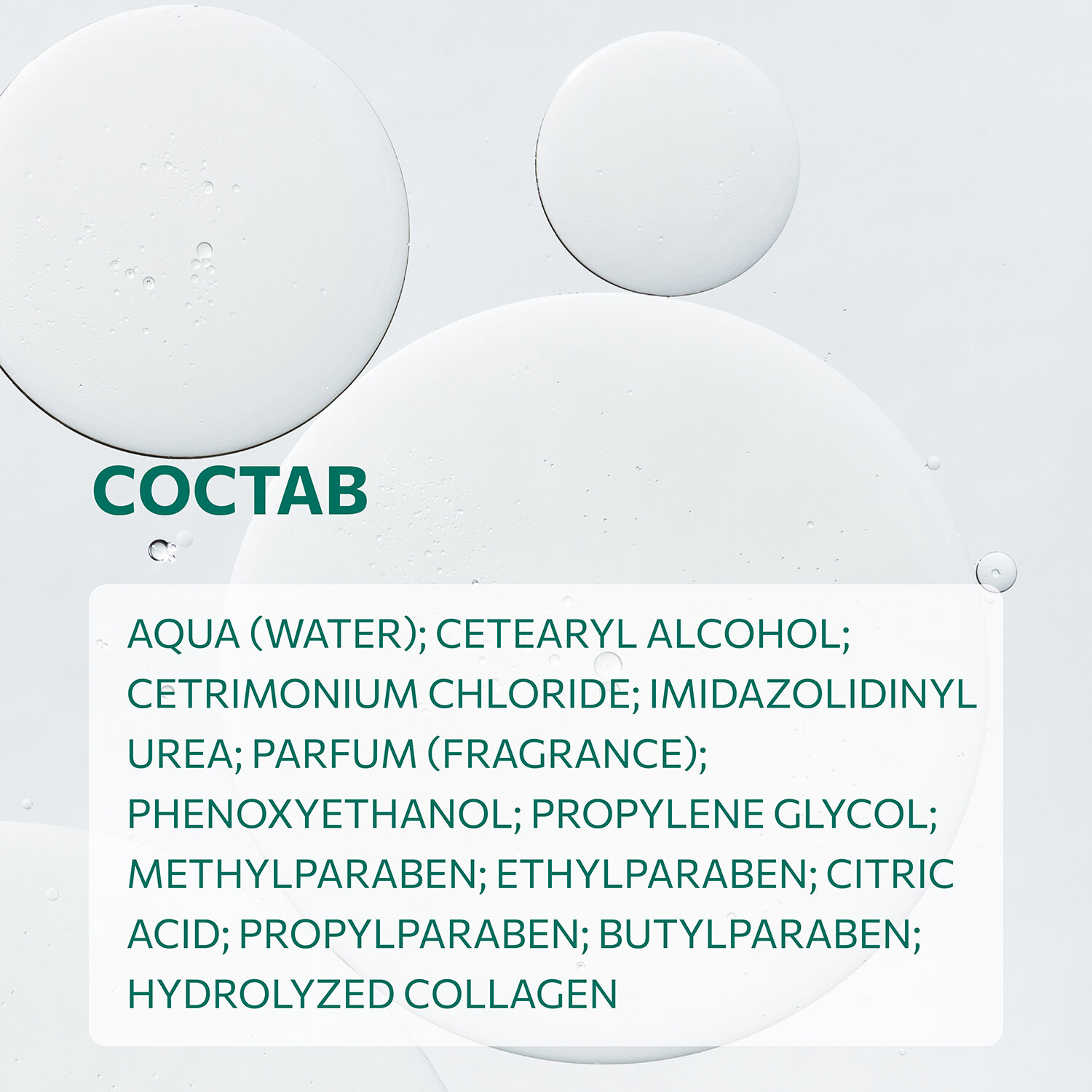 Состав: Aqua (Water); Cetearyl Alcohol; Cetrimonium Chloride; Imidazolidinyl Urea; Parfum (Fragrance); Phenoxyethanol; Propylene Glycol; Methylparaben; Ethylparaben; Citric Acid; Propylparaben; Butylparaben; Hydrolyzed Collagen