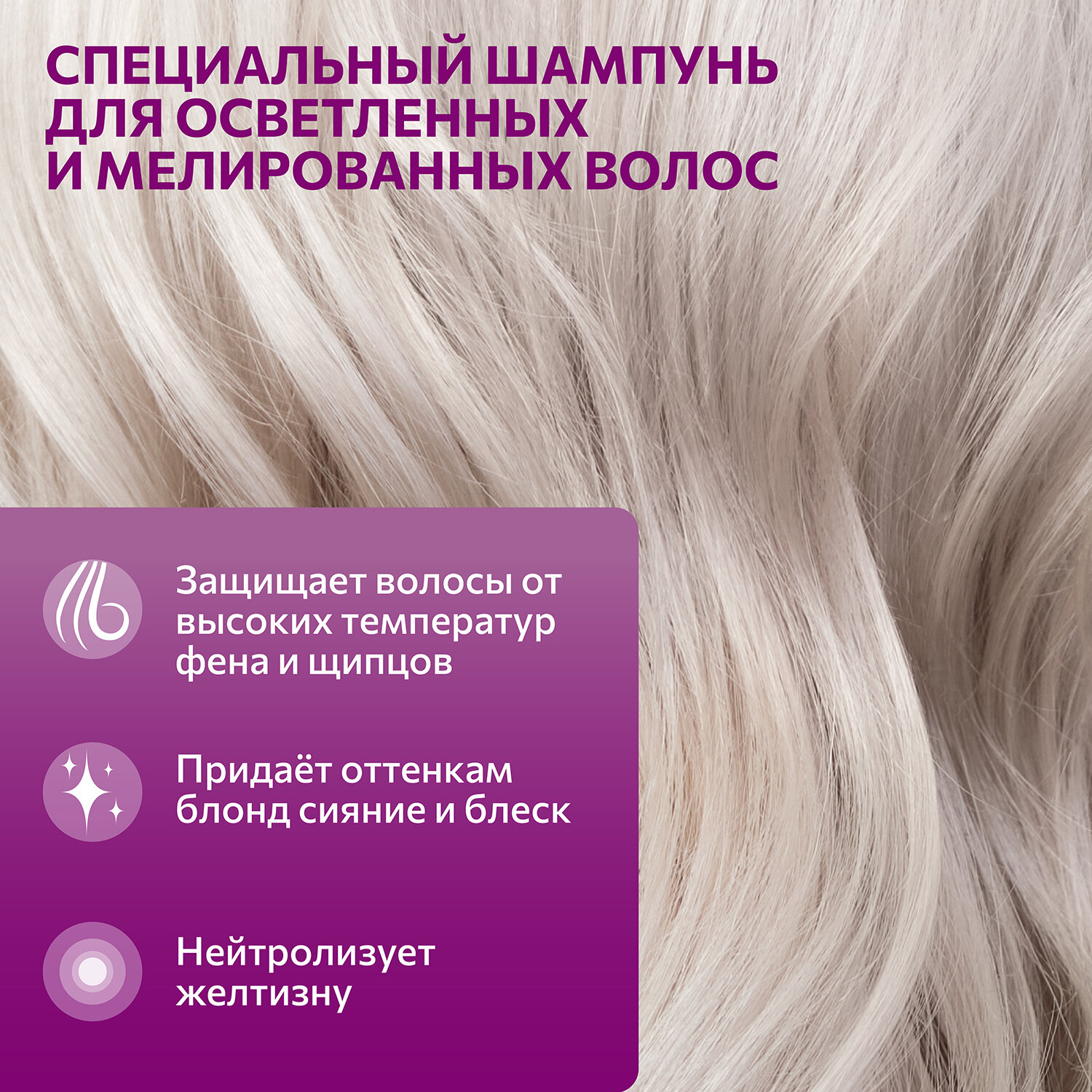 | Назначение | для поврежденных волос; для светлых волос |