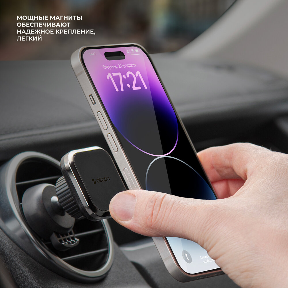Поворотный магнитный держатель Mage Twist выдержит любой современный смартфон благодаря четырем мощным неодимовым магнитам. Настраиваемый угол наклона и высоты позволяет использовать гаджет с комфортом, обеспечивая полноценное общение с устройством.