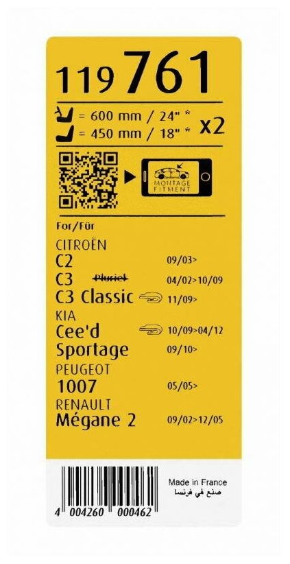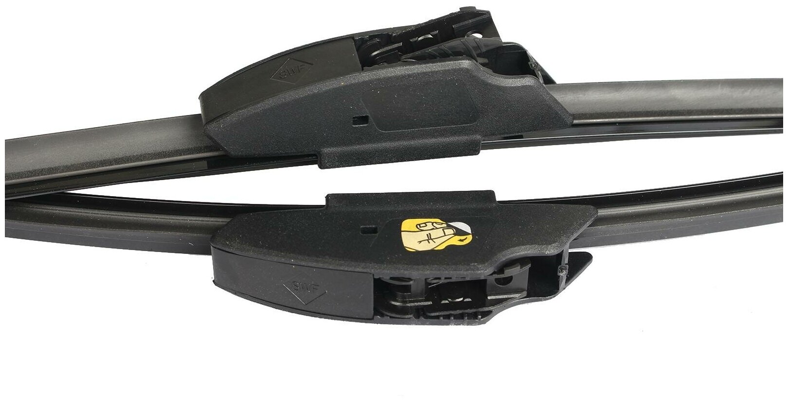 наличие в бескаркасных щетках длиной 60 см металлических пластин, обеспечивающих плотное прилегание стеклоочистителя к поверхности;