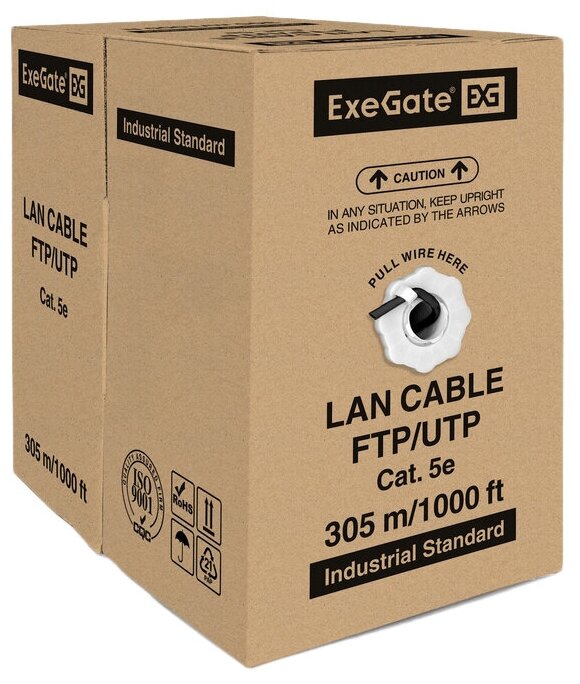 Кабель витая пара FTP 5e кат. 4 пары Exegate FUTP4-C5e-CU-S24-OUT-PE-BK-305