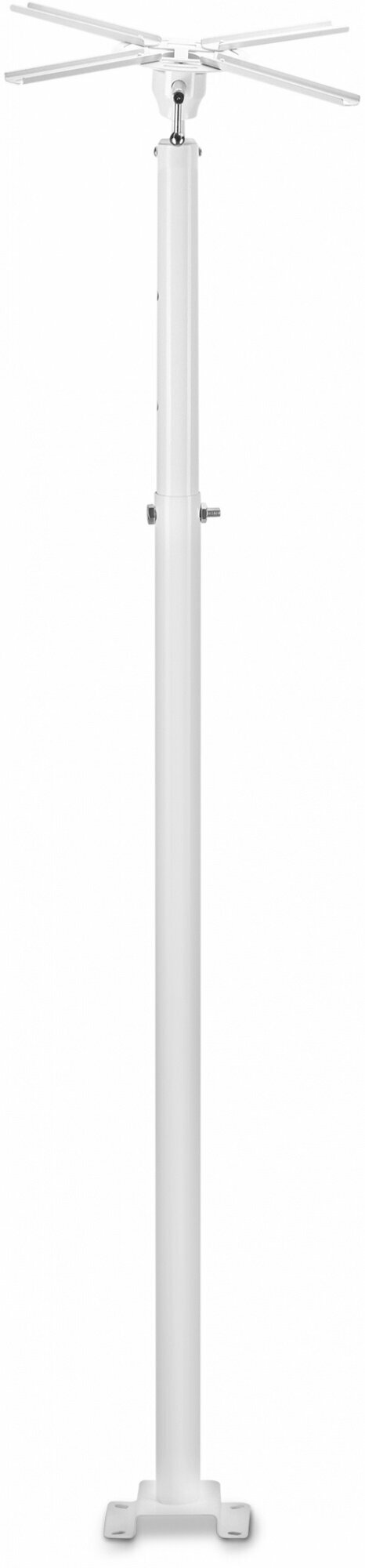 Белый цвет в глаза не так бросается на фоне белых потолков как черный. Штанга выдвижная и стопорится болтами. Кронштейн с наклоном и поворотом на 360 градусов. Полностью сделан из стали холоднокатаной. Как ни странно даже краска не облупливается со стали что не может не радовать.