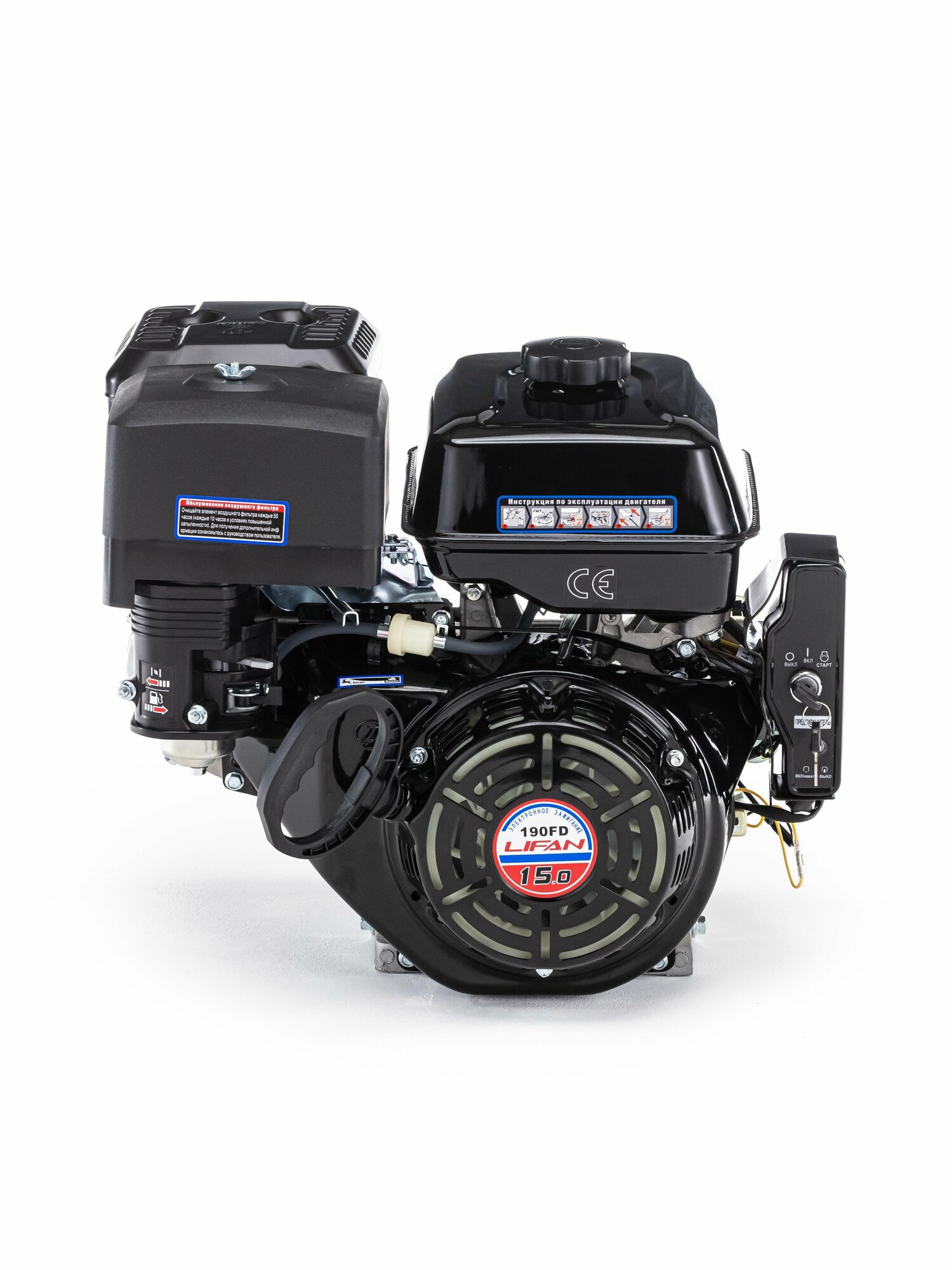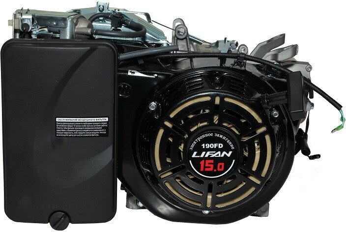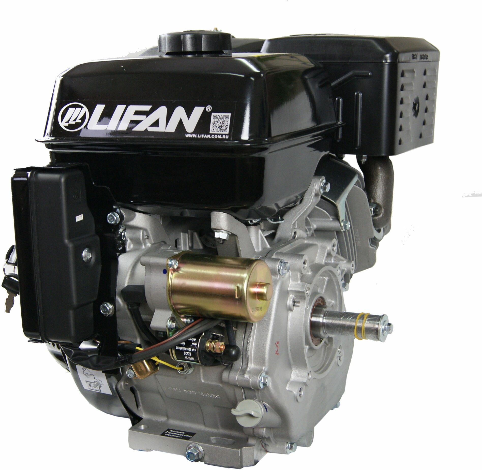 Двигатель бензиновый LIFAN предназначен для установки на различную технику бытового назначения, насосы и электрогенераторы. Данная модель весит всего 36 кг. Двигатель компактный по габаритам. Легко переносит длительные нагрузки за счет системы принудительного воздушного охлаждения. При низком уровне масла автоматика не даст двигателю завестись. Объема бака хватает на несколько часов бесперебойной работы. В представленной модели гильза цилиндра двигателя выполнена из чугуна, что позволяет увеличить в разы моторесурс двигателя. Также у данной модели есть электростартер, позволяющий за считанные секунды запустить Lifan . Но производитель предусмотрел и возможность запуска силовой установки с помощью ручного стартера, что является очень удобным.