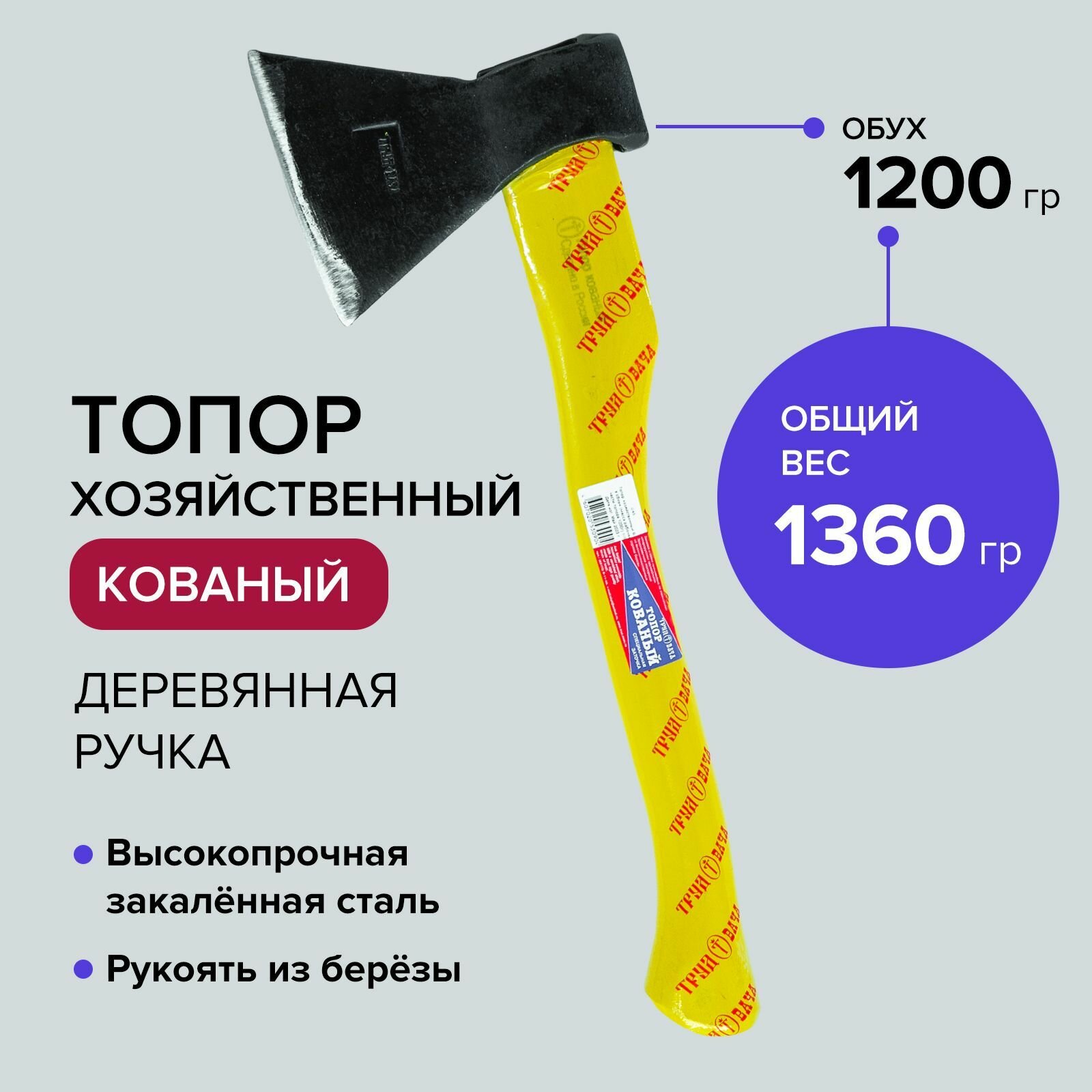 Кованный топор Труд Б-3 представляет собой ручной инструмент, предназначенный для заготовки дров и грубой обработки древесины. Оптимально подойдет для выполнения работ плотницкого и столярного характера на даче.Преимущества Рукоятка эргономичной формы обеспечит удобное и надежное удержание, а также амортизирует колебания при ударе Выполнена из древесины, которая покрыта спец. составом для повышения периода эксплуатации Длина ручки – 50 см Голова топора выполнена из цельнометаллической заготовки, что повышает безопасность эксплуатации: это предотвращает вылет обуха