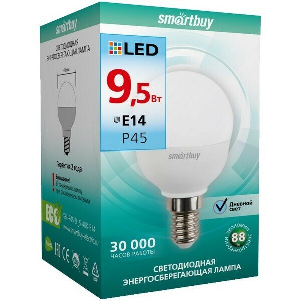 Светодиодная лампа Smartbuy P45-9,5w/4000/e14