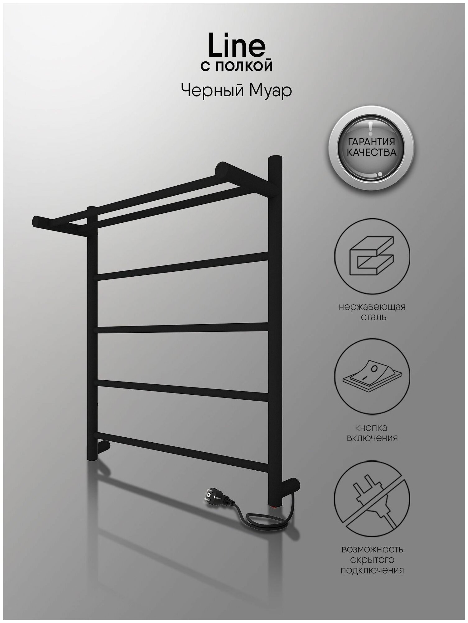 Полотенцесушитель электрический INDIGO Line с полкой в размере 600х500 (ВхШ) выбирают за его вид – лесенки и универсальность. Модель оснащена кнопкой включения внизу стойки. Универсальность изделия предусматривает подключение через прямой провод, который переставляется на нужную вам сторону или скрытое подключение без покупки дополнительного переходника. Длина прямого провода 1,2 метра. Изделие имеет полку для большего комфорта и окрашено порошковой краской по специальной технологии. Полотенцесушитель относится к энергоэффективным изделиям, потребляемая мощность в данном размере 65 Вт. Специальная технология нагревательного кабеля защищает полотенцесушитель от перегрева что влияет на длительные сроки службы. В комплектации идут 4 телескопических держателя, комплект монтажа и гарантийный паспорт. Полотенцесушитель INDIGO Line с полкой застрахован и имеет гарантию 3 года. Выбирая INDIGO вы получаете надежный продукт из нержавеющей стали с гарантией качества от Российского производителя