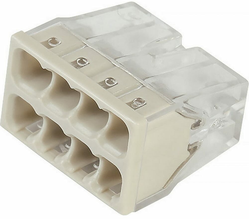 Строительно-монтажная клеммы предназначены для соединения проводников. Пружинные зажимы клемм обеспечивают надежный и долговечный контакт. Наличие технологического отверстия позволяет проверять наличие электрического контакта между проводниками. Последняя цифра в наименовании позволяет определить количество соединяемых проводников. Преимуществом строительно-монтажных клемм перед другими видами электрических соединений является простота монтажа и надежная защита от контакта с токоведущими частями.