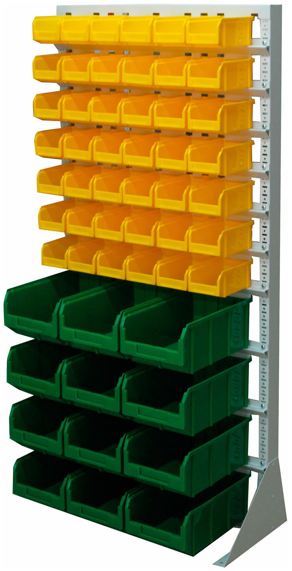 Стойка Стелла-техник 735х1500 односторонняя, А1-07-00-04 оснащена двумя типами ящиков открытого типа, что дает возможность хорошего визуального обзора их содержимого. Данная модель устанавливается в крупных авто-слесарных мастерских, на складах, а также в торговых помещениях с целью эффективной организации рабочего места. Наличие специальных кармашков в ящиках позволяет вставить туда идентификационную карточку, которая поможет быстро найти необходимый крепеж или инструмент.