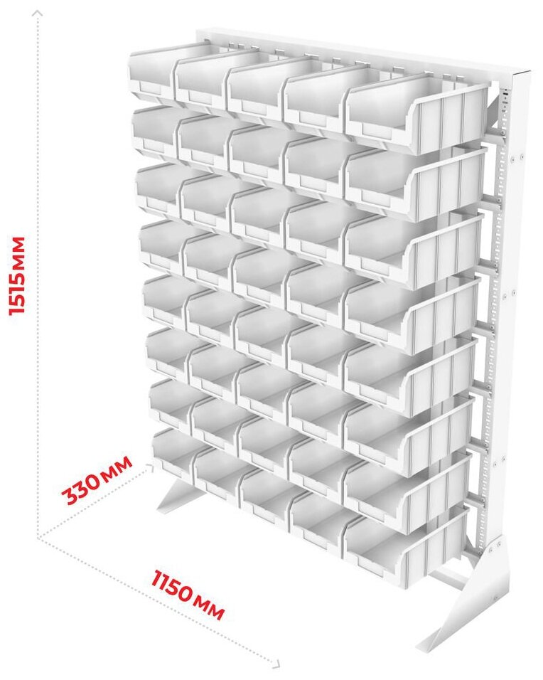 Стойка 1150х1500 Стелла-техник С1-00-09-00 односторонняя служит для эффективной организации рабочего пространства склада, магазина, гаража, мастерской, производства. Используется для систематизации и хранения мелких подручных приспособлений и инструментов. Опоры стойки имеют возможность крепления к полу, что обеспечивает высокую устойчивость всей конструкции. Стойка комплектуется пластиковыми ящиками серии V-2 размером 234х149х120мм. Распределенная нагрузка на ряд до 40 кг. Комплектация: Стойка под пластиковые ящики 1150х1515мм. без опоры серия К; Опора стойки односторонняя, комплект (правая + левая + крепеж), серия К; Держатель для стойки 1150мм. серый, распределенная нагрузка до 40кг. на ряд, серия К - 9 шт.; Пластиковый ящик серии V-2 размером 234х149х120мм. – 63 шт. Каждый ящик оснащен специальным кармашком, позволяющим вставить этикетку, для индикации содержимого. Конструкция стойки позволяет легко извлекать нужный ящик и так же легко устанавливать его на место. Преимущества: быстрая сборка, высокая надежность, долгий срок службы.