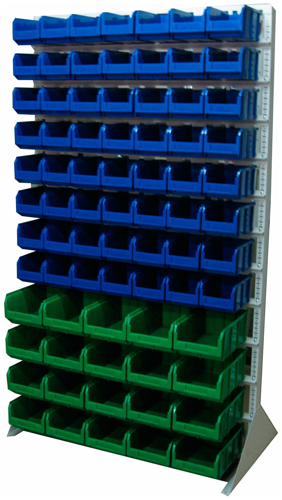 Стойка 1150х2000 Стелла-техник В1-00-08-04 односторонняя служит для эффективной организации рабочего пространства склада, магазина, гаража, мастерской. Используется для систематизации и хранения мелких подручных приспособлений и инструментов. Опоры стойки 1150х2000 имеют возможность крепления к полу, что обеспечивает высокую устойчивость всей конструкции. Комплектация: Стойка под пластиковые ящики 1150х2000мм. без опоры, серия К; Опора стойки односторонняя комплект (правая + левая + крепеж) серия К; Держатель для стойки 1150мм., серый, распределенная нагрузка до 40кг. на ряд, серия К - 11 шт.; Пластиковый ящик серии V-2, размеры 234х149х120мм. - 56шт., Пластиковый ящик серии V-3, 341х207х143мм. - 20 шт.; Упаковка. Преимущества: Хороший визуальный обзор содержимого. Каждый ящик оснащен специальным кармашком, позволяющим вставить этикетку для индикации содержимого. Конструкция стойки позволяет легко извлекать нужный ящик и так же легко устанавливать его на место. Быстрая сборка. Высокая прочность. Габариты: 1150х330х2000 мм., вес 53,9кг.