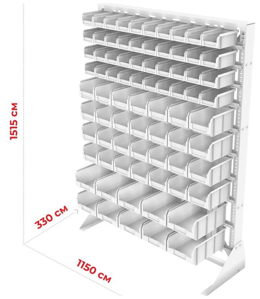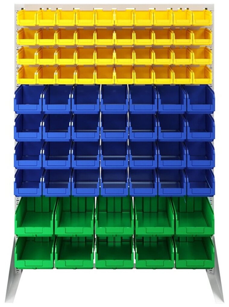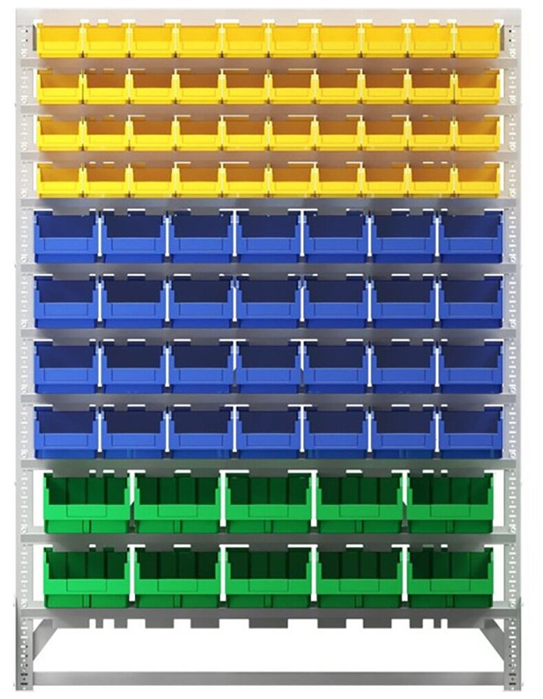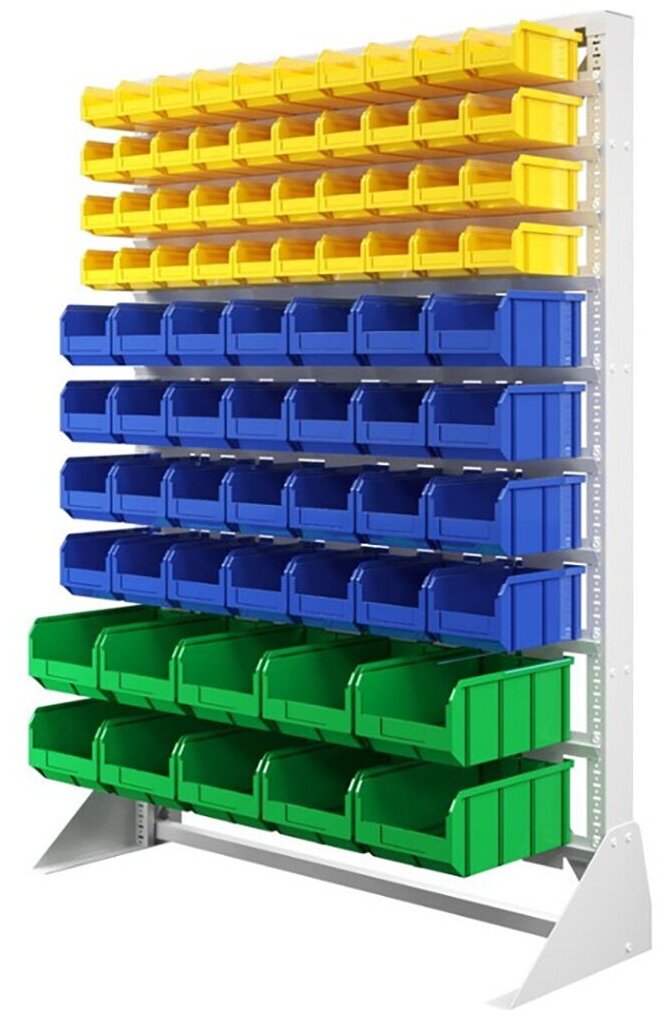 Стойка 1150х1500 Стелла-техник С1-04-04-02 односторонняя служит для эффективной организации рабочего пространства склада, магазина, гаража, мастерской. Используется для систематизации и хранения мелких подручных приспособлений и инструментов. Стойка оснащена тремя типами ящиков размерами: 172х102х75мм. желтые, 234х149х120мм. синие и 341х207х143мм. зеленые, что дает возможность систематизации и складирования самых различных изделий и инструментов. Держатели, выдерживающие распределенную нагрузку до 40 кг, могут перемещаться по стойке, что дает возможность пользователю образовывать различные комбинации ящиков. Комплектация: Стойка под пластиковые ящики 1150х1500мм. без опоры серия К; Опора стойки односторонняя комплект (правая + левая + крепеж), серия К; Держатель для стойки 1150мм. серый, распределенная нагрузка до 40кг. на ряд, серия К - 11 шт; Пластиковый ящик серии V-1 размером 172х102х75мм. - 40 шт; Пластиковый ящик серии V-2 размером 234х149х120мм. - 28 шт; Пластиковый ящик серии V-3 размером 341х207х143мм. - 10 шт; Упаковка. Технические характеристики: тип ящиков V-1, V-2, V-3, высота 1500мм, ширина 1150мм. Вес 40,1кг. Преимущества: Каждый ящик оснащен специальным кармашком, позволяющим вставить этикетку для индикации содержимого. Конструкция стойки позволяет легко извлекать нужный ящик и так же легко устанавливать его на место. Быстрая сборка. Высокая надежность.