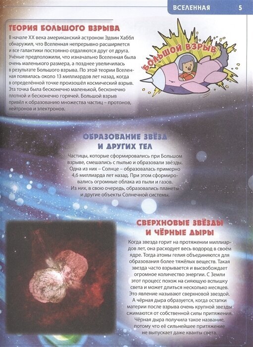 Знаешь ли ты, что такое чёрная дыра? Когда на нашей планете появился первый человек и кто изобрёл телевизор? Почему ты всегда падаешь на землю, а космонавты "летают" внутри космической станции? Какая птица умеет летать задом наперёд, и для чего ящерицам язык? Ответы на эти и многие другие вопросы ты найдёшь в нашей иллюстрированной энциклопедии!