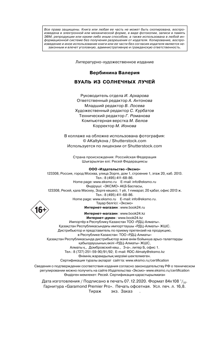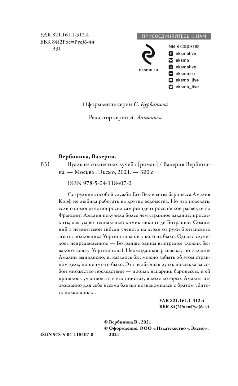 Книга: Вуаль из солнечных лучей (Валерия Вербинина); Эксмо, Редакция 1, 2021