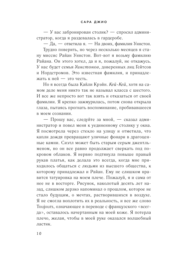 История написана так, что мы отказываемся сначала в прошлом кайли, а в следующей главе в настоящем моменте и т.д. , мне понравился данный прием Сары Джио. Книга хоть и в мягкой обложке, но выполнена хорошо, обложка приятная, даже с оформлением блестками, шрифт удобный, правда буквы могут смазываться. Издание красивое, хочется дальше собирать в нем коллекцию романов. -