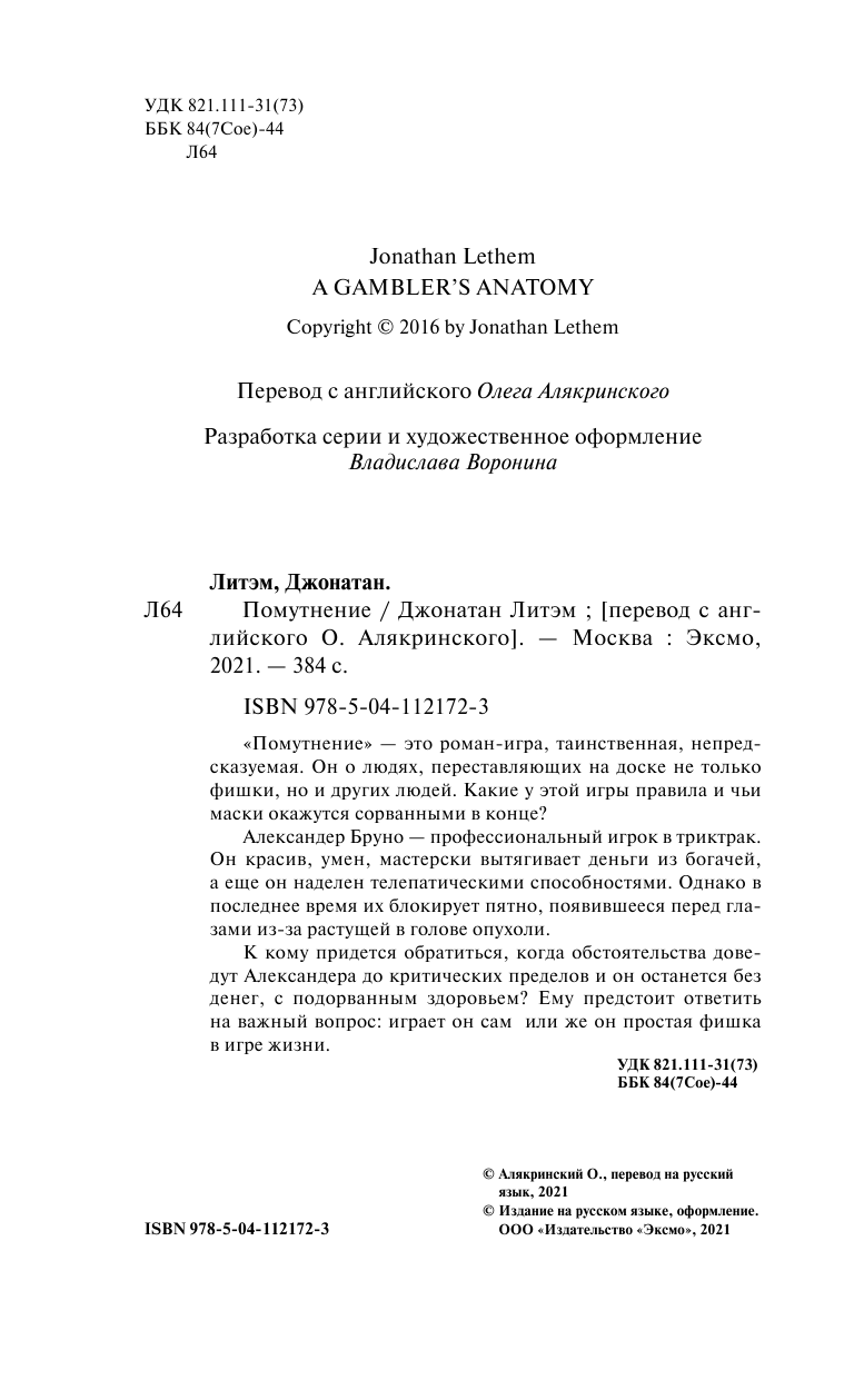 Книга: Помутнение (Джонатан Литэм); Эксмо, Inspiria, Редакция 1, 2021