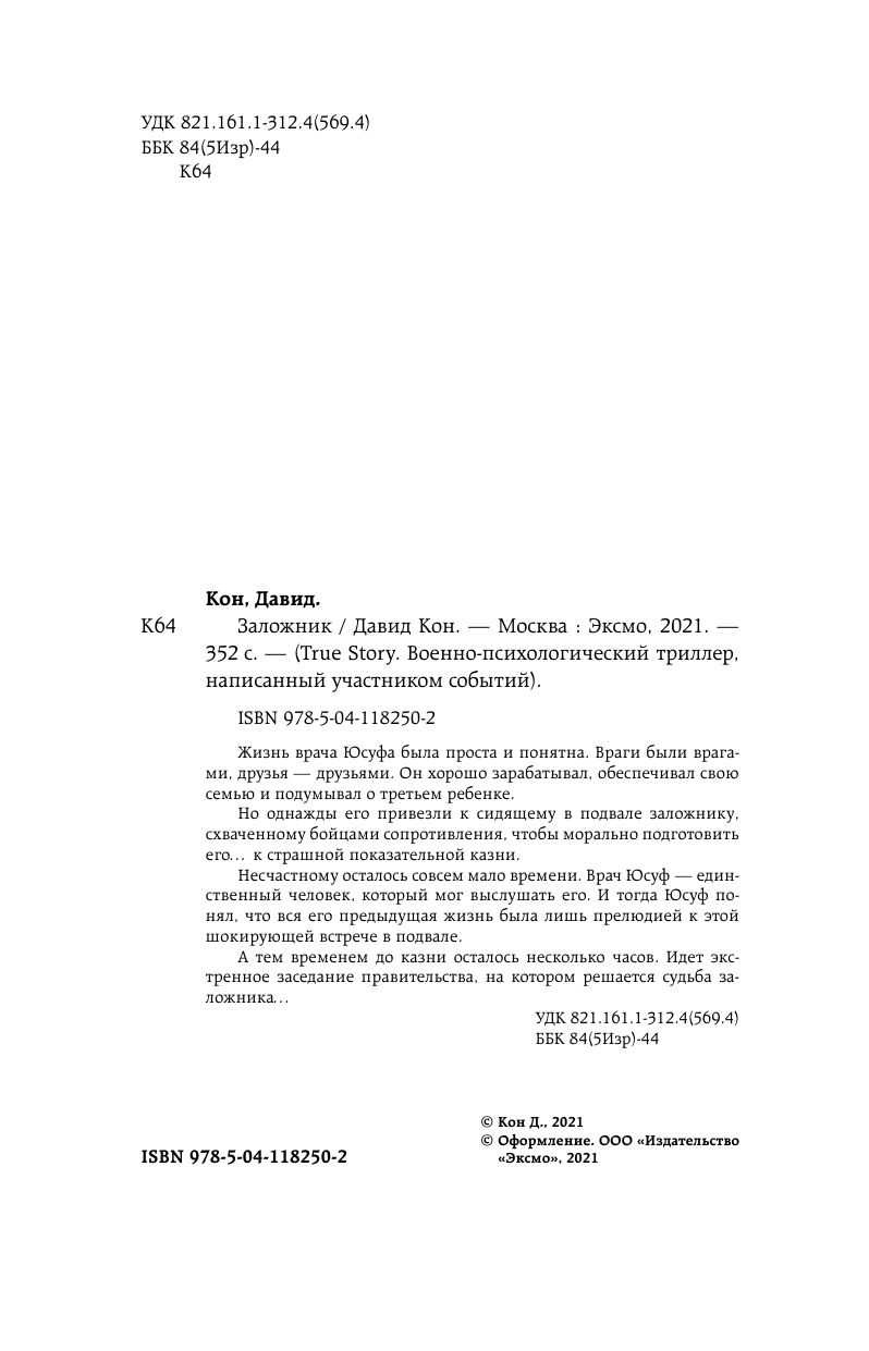 Книга: Заложник (Давид Кон); ООО "Издательство "Эксмо", 2021