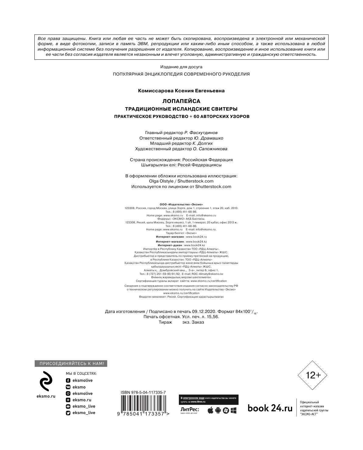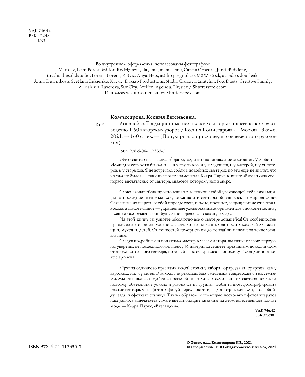 Лопапейса. Традиционные исландские свитеры. Практическое руководство + 60 авторских узоров (Комиссарова Ксения Евгеньевна); ООО "Издательство "Эксмо", 2021