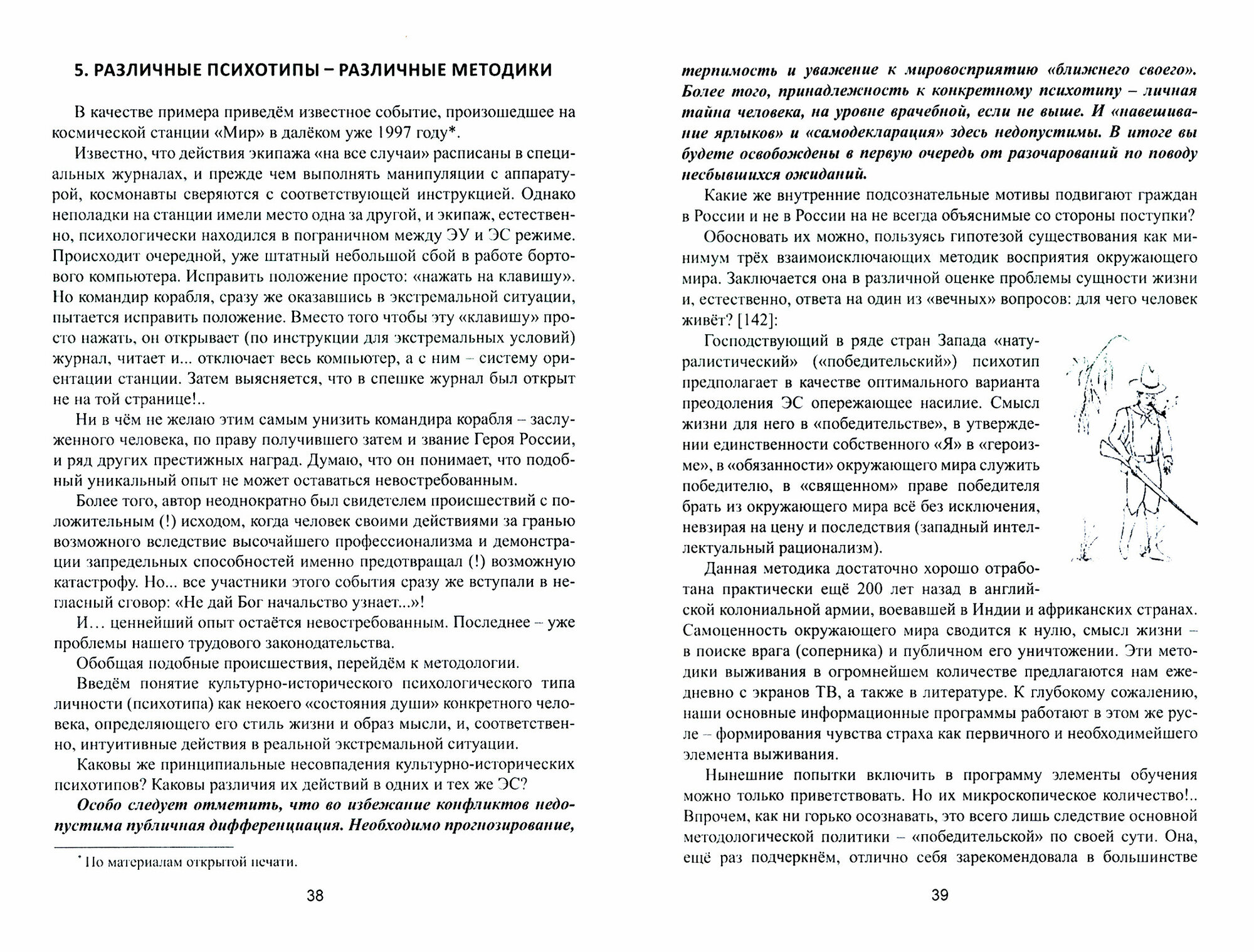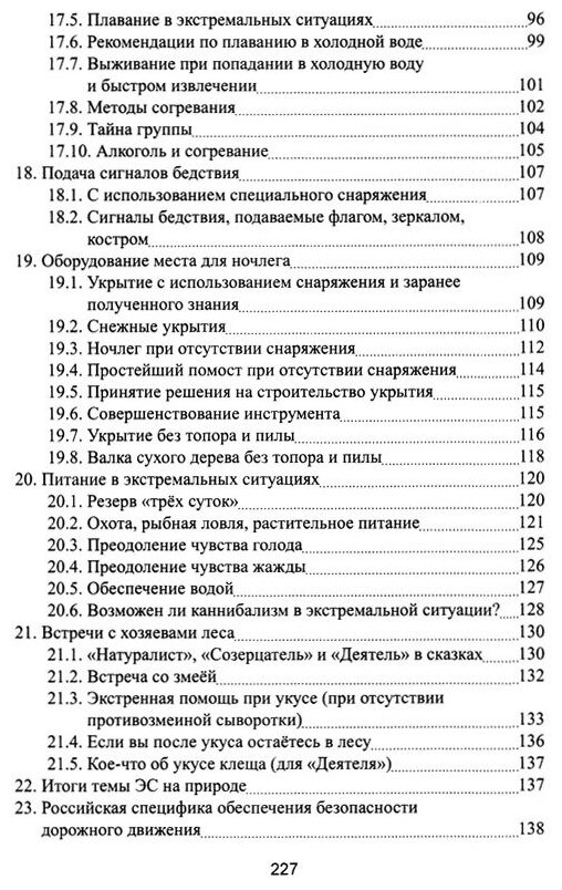 Не является ни учебником, ни инструкцией по выживанию (хотя некоторые советы есть, но их неожиданно мало). Автор проповедует свою философию, которая отличается как от западного подхода (встречать опасность во всеоружии), так и от восточного (переносить все лишения стойко, если надо, умереть достойно), на мой взгляд, окарикатуренного . Но рассуждения об этих отличиях составляют не бОльшую, но приличную часть книги. Не для того покупал, чтобы постигать философию. Нумерация ссылок на литературу сбиты: в тексте говорится один автор, в "Литературе" - другой. Тираж 300 экземпляров. Цена, на мой взгляд, безбожная.