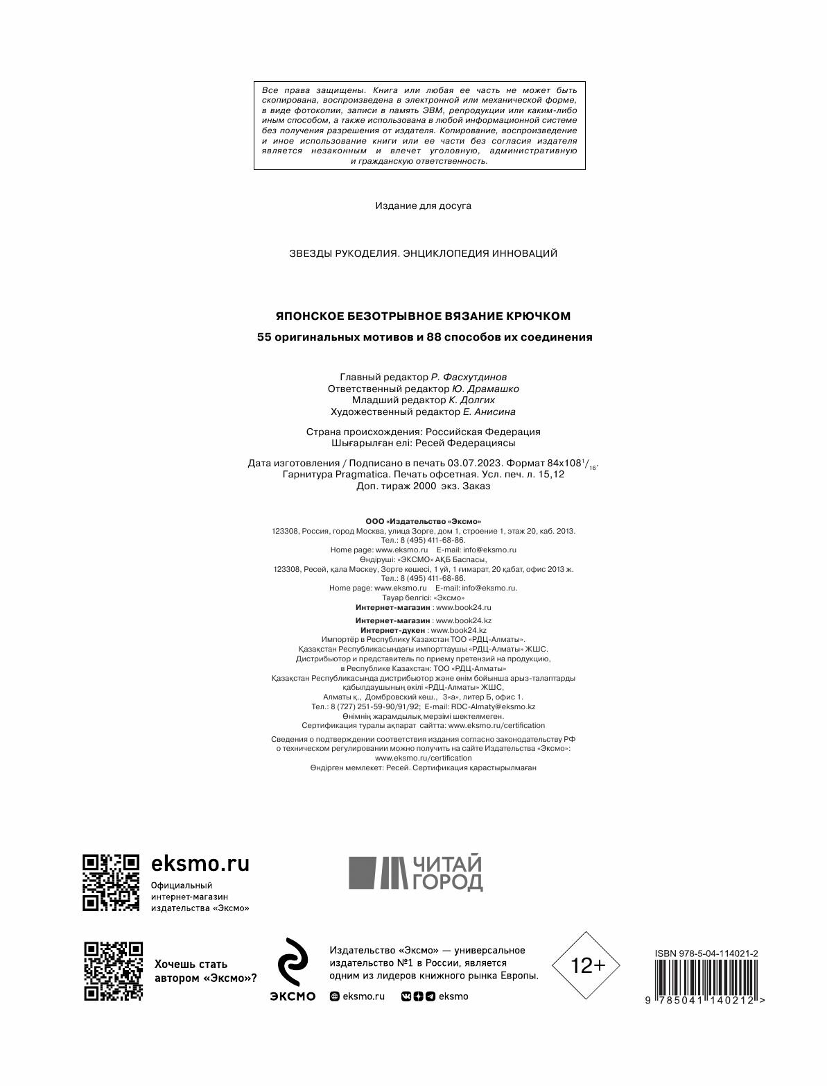 Японское безотрывное вязание крючком. 55 оригинальных мотивов и 88 способов их соединения (Долгих Ксения Николаевна); ООО "Издательство "Эксмо", 2021