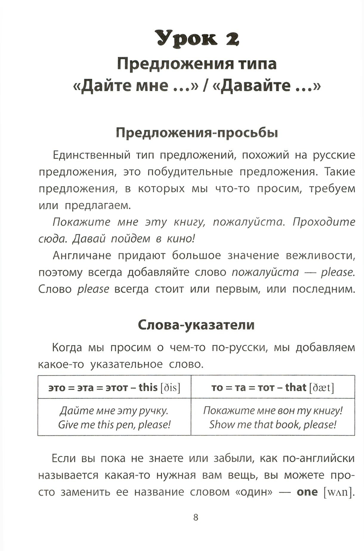 В настоящее время английский язык начинают учить достаточно рано: в группах раннего развития, в детском саду, в начальной школе. Дети все схватывают на лету, но так же легко и забывают полученные знания, если они «валятся в общую кучу». Очень часто в старших классах оказывается, что не заложена база, которой ученик мог бы пользоваться, добавляя к ней все новые знания. Чтобы усилия не пропадали даром, в книге предлагается с первых шагов изучения английского языка все знания «раскладывать по полочкам». И конечно, сразу же практиковаться. Ведь так приятно, узнав всего несколько слов, сложить из них осмысленную фразу. Шаг за шагом, урок за уроком, на простых примерах ребенок освоит самые нужные предложения и сможет говорить на самые распространенные темы. Картинки позволят ребенку запоминать слова без особых усилий. Возможность раскрасить рисунки сделает занятия увлекательными, и эта книга, возможно, станет для вашего ребенка одной из любимых.