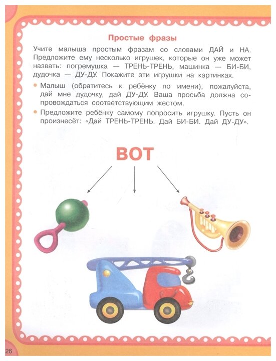Задания для малышей расположены по принципу от простого к сложному, всего около 30 разнообразных упражнений, включают и дыхательные техники, рассказ по картинке, гимнастику для языка. Картинки не мелкие, задания автор пособия рекомендует выполнять вместе с игрушками, делая их интерактивными и более интересными для малыша.