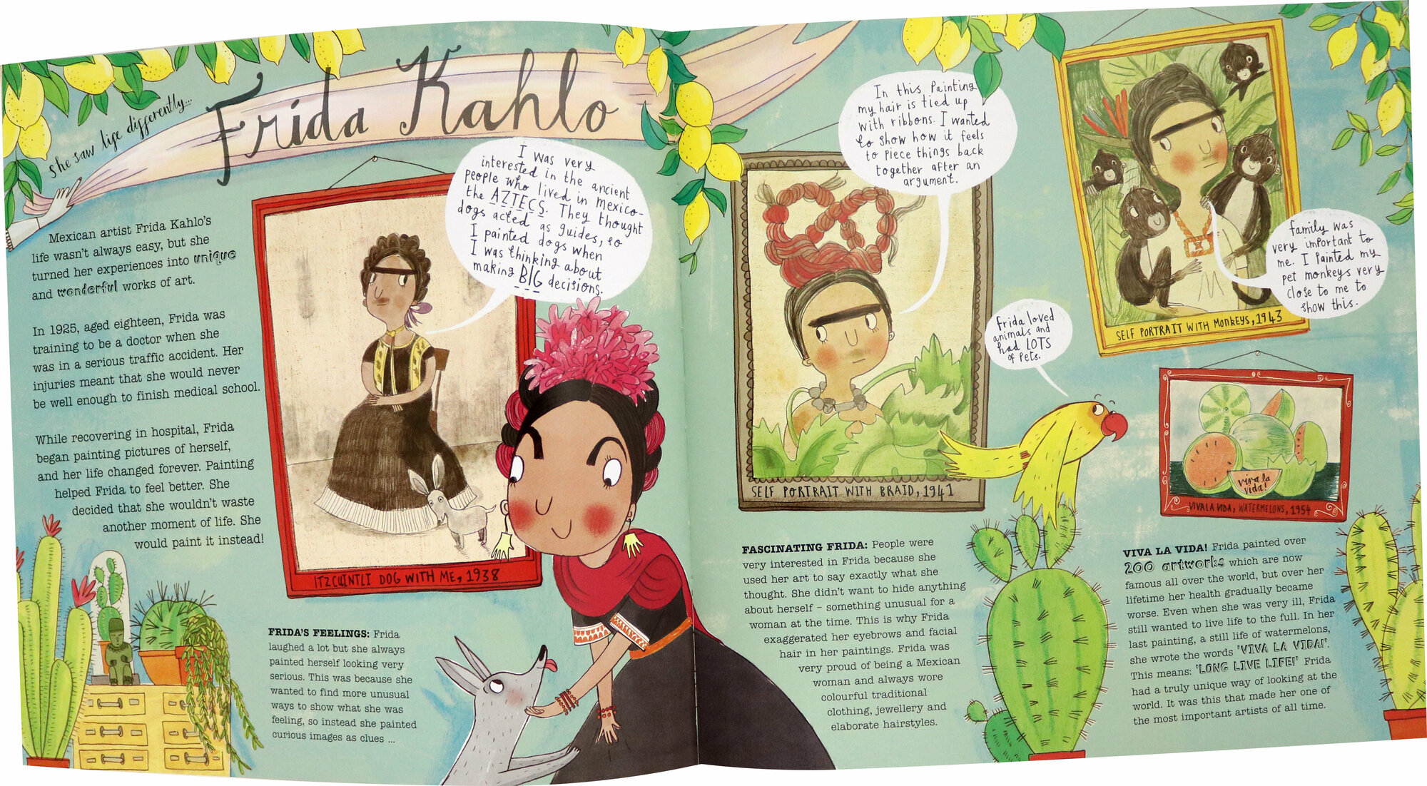 List of women featured: Jane Austen, Gertrude Ederle, Coco Chanel, Frida Kahlo, Marie Curie, Mary Anning, Mary Seacole, Amelia Earhart, Agent Fifi, Sacagawa, Emmeline Pankhurst, Rosa Parks, Anne Frank
