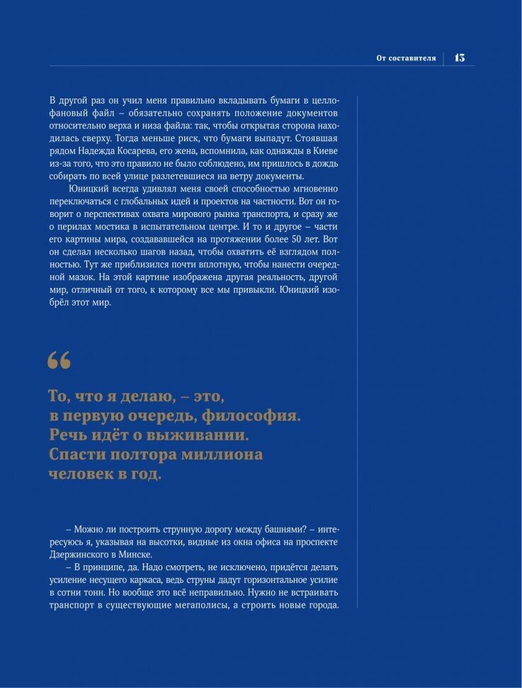 Книга была прочтена мной буквально за два дня. Эта история взлётов и падений, надежд и разочарований, радости от успеха и горечи от неудачи. Но тем не менее эта история о непрекращающемся движении к своей мечте г-н А. Юницкого. Изобретение Инженера даёт нам и нашим детям надежду на светлое и чистое будущее!