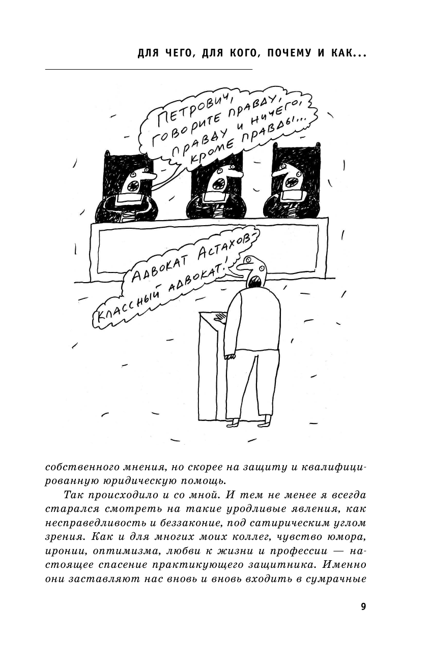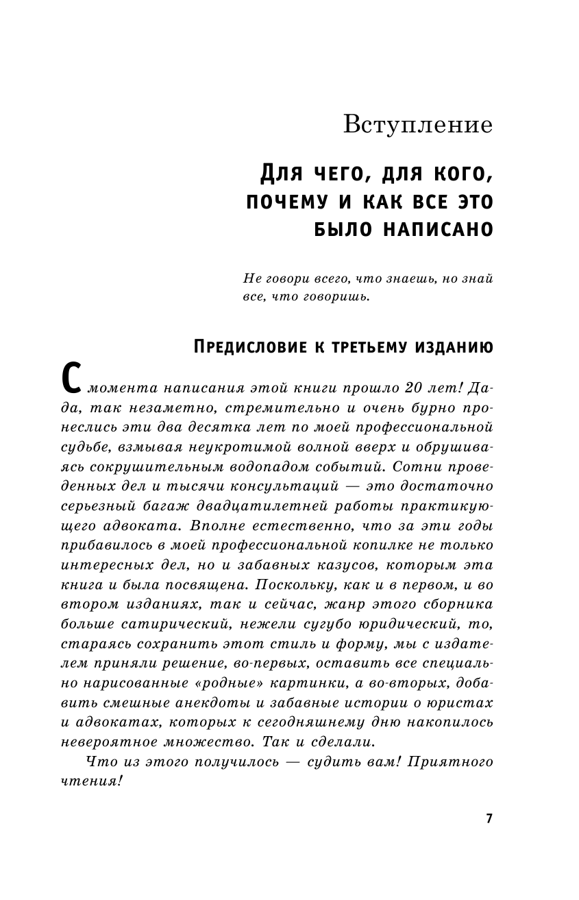 Павел Астахов — известный адвокат, правозащитник и писатель, — рассказывает об интересных случаях из практики. Помимо этого, книга содержит практические рекомендации: как выбрать адвоката, как защитить тайну частной жизни. Истории о судебных тяжбах сопровождаются остроумными анекдотами и забавными иллюстрациями карикатуриста Андрея Бильжо.