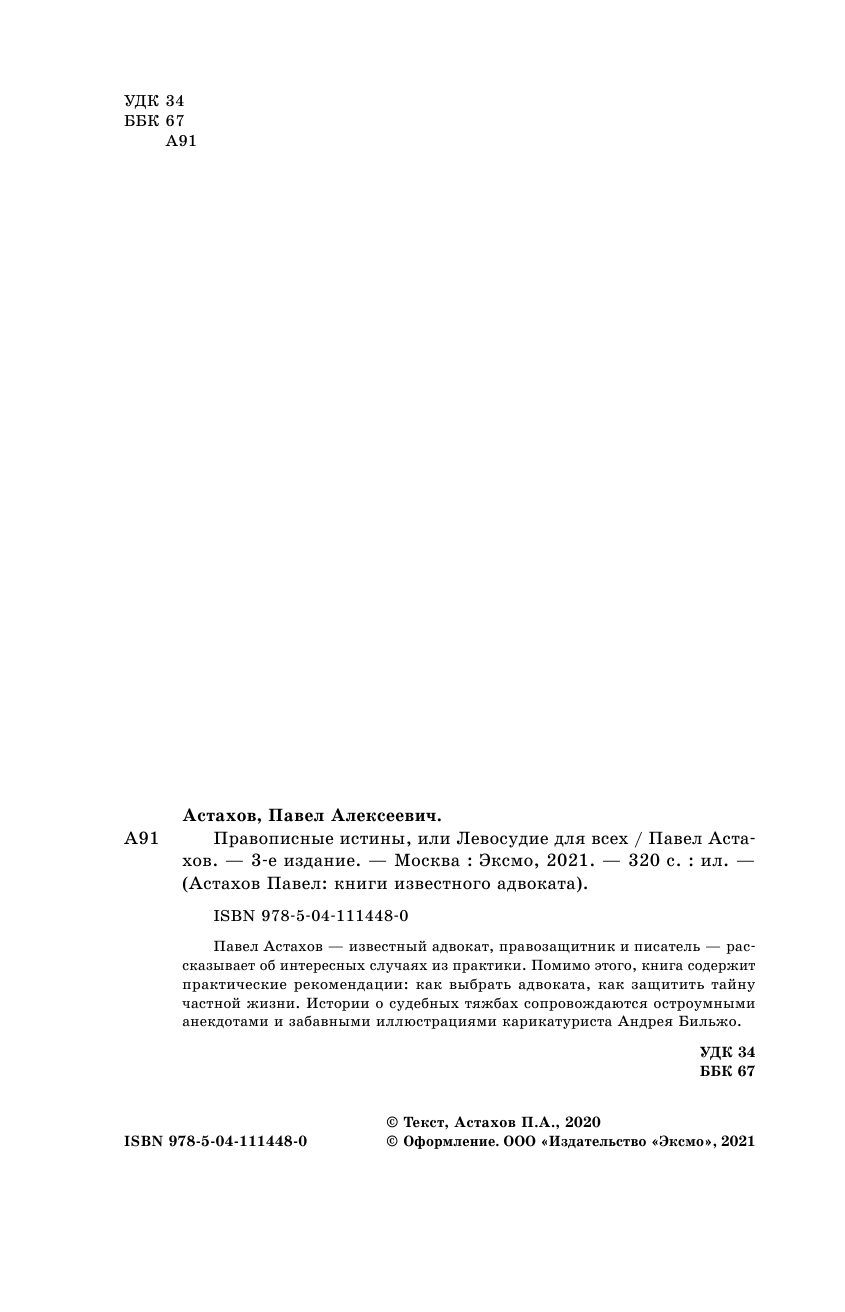 Правописные истины или Левосудие для всех (Астахов Павел Алексеевич); ООО "Издательство "Эксмо", 2021